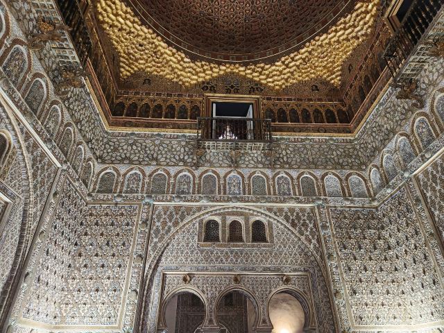 寝宫位于阿尔卡萨宫北侧,这里有华美的天花板和精致的雕刻和瓷砖,寝宫后面的房间就是当年国王在夏季的卧室。