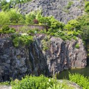 植物园因园中的辰山而得名,爬到山顶可俯瞰公园全景。20世纪由于采石,辰山的南坡已被削去,现在在采石场原址上修建了矿坑花园,是园区内的一大亮点。游客走下台阶,到矿坑底部湖面上的浮桥,瀑布泻入湖中,穿越山洞,可来到相连的岩石和药用植物园,仿佛真的有下矿井的感觉。