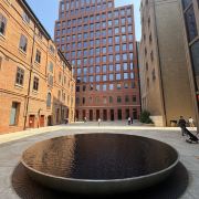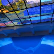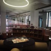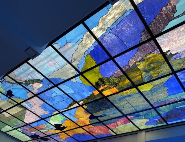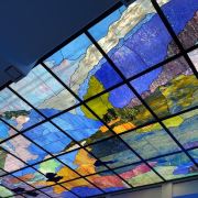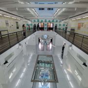 美术馆里面的展览主要是定期的专题展,每隔几个月就会更换主题和展品,你可以跟随讲解员详细了解展品的内涵。此外,咖啡厅室内的墙上也有部分展品,而室外部分是一个天台,可以欣赏周边的城市风光,或者坐在这里喝上一杯咖啡,小憩一下感觉也不错。