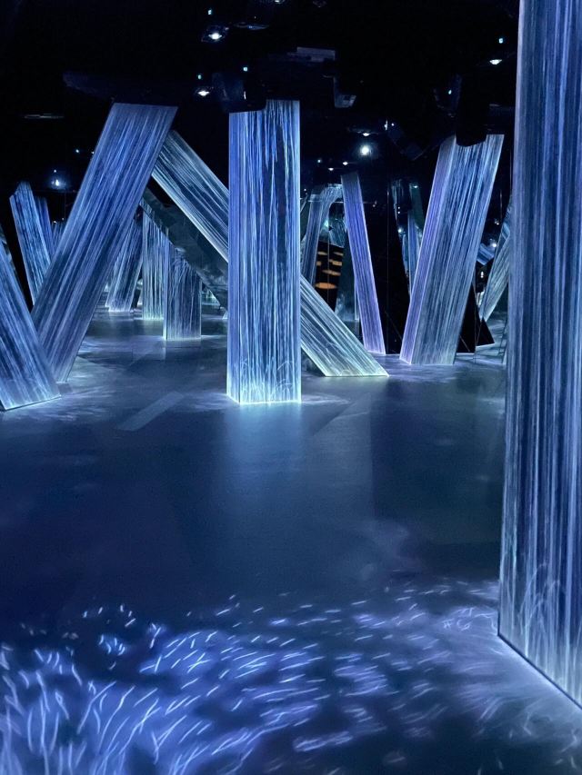 时间那一层,是夜晚和白昼,黑暗的突然来临,我告诉身边的孩子,如果你遭遇了地震,停电,你该怎么办?要哭吗?大叫吗?在这个时候,我们是不是需要凝神静气,冷静下来,耐心的等待白昼来临,就像是成功,就是100分,是需要经过漫长的等待,漫长的努力才能达到的事情,等我讲解的差不多的时候,工作人员进入show time时间。小朋友们又不是很懂,我把孩子们喊过来说第一回合,拉起来的窗帘是单数,第二轮,拉起来的窗帘是双数,这表明,这不是杂乱无章的表演,而是精心策划的,巴黎的早晨,我们在清晨迎着第一缕阳光,开始工作。远处漂洋过来的风铃声整好个地面的影子行成呼应。