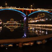 沱江跳岩,是凤凰古城的标志性景点之一,位于古城北门外的沱江上,全长约100米,共15个岩墩。沱江跳岩始建于清康熙四十三年(1704年),当年这里是东北向进出凤凰古城的主要通道之一。因人们经过时必须踩着这一路岩石,一跳一跳地过河去,“跳岩”便因此而得名。