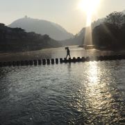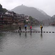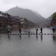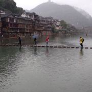 沱江跳岩是凤凰古城的标志性景点之一,其实就是在沱江上修建的岩墩,始建于清康熙年间,旧时是进出凤凰古城的主要通道之一,现在则成了一道风景线。如果节假日上去那真的是寸步难行。此时应选择清晨人少时来感受下安静的沱江和古城,然后再赶着沱江泛舟码头开始运营时去坐游船,避免长时间排队。
