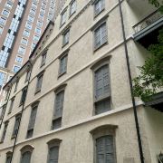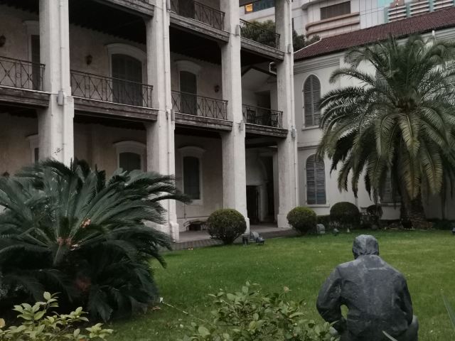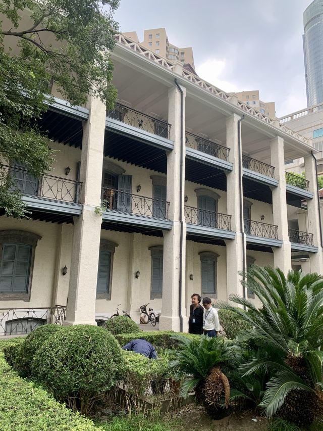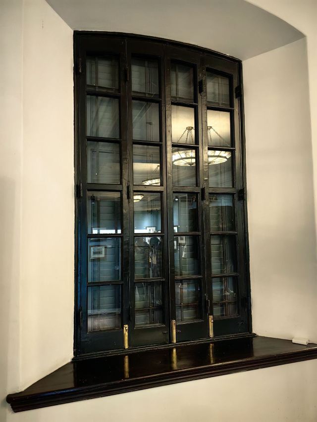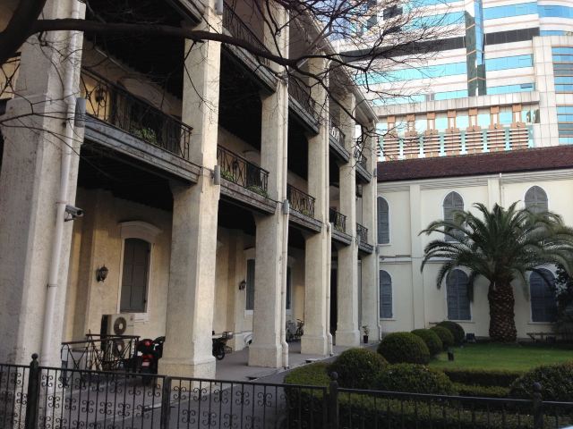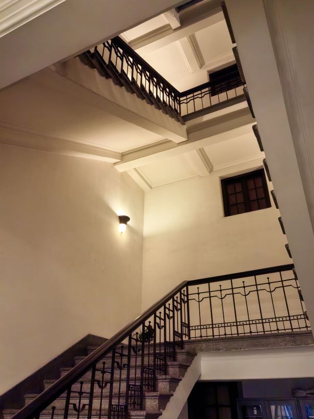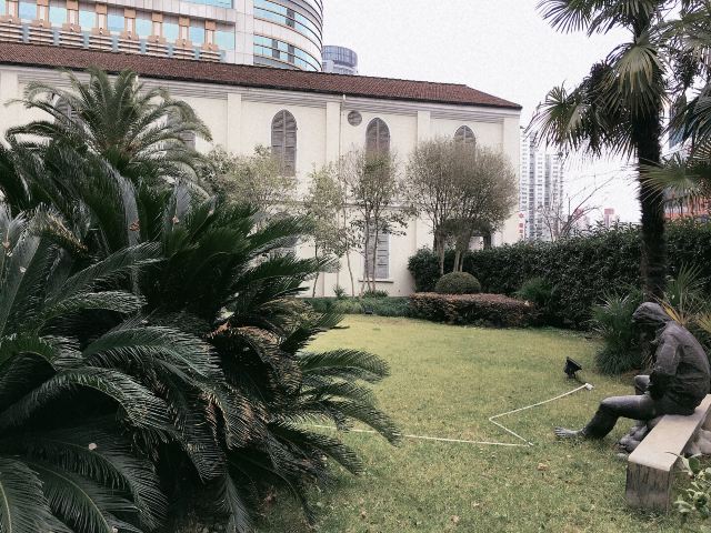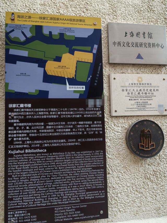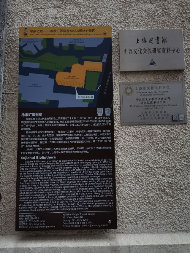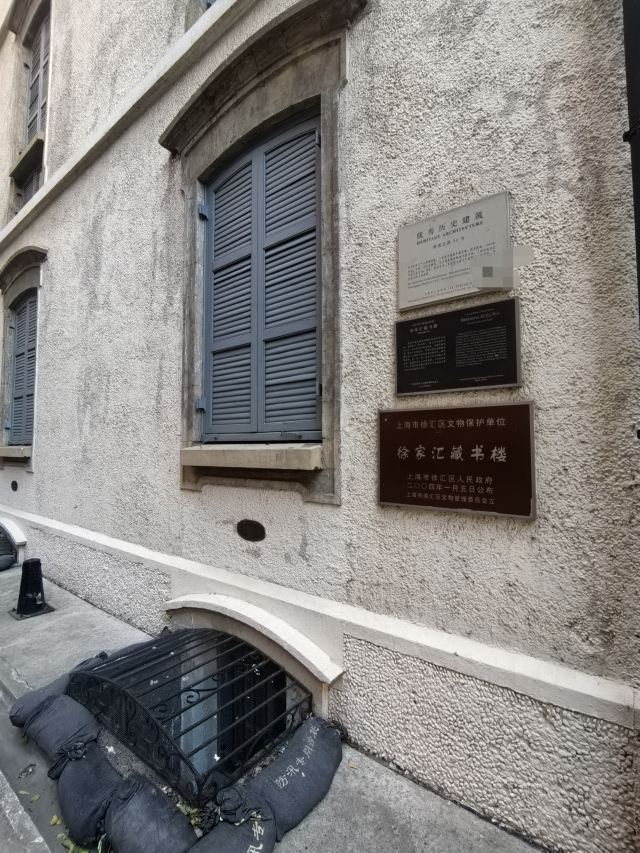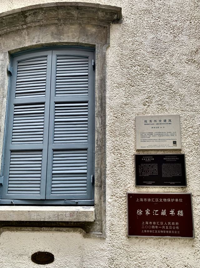 整个藏书楼看上去比较陈旧,楼前还有一小块草坪,特别是那些木质百叶窗颇具沧桑感,和繁华的徐家汇商区形成鲜明对比,从外观看感觉不被所用了,其实内部藏书还很丰富,但不公开对外开放,入内参观有一定要求,据说曾经因为造地铁要拆除,后在巴金等知名知识分子联名呼吁下才得以保留。这倒引起了我的兴趣,适时在开放的时间进入参观一下。