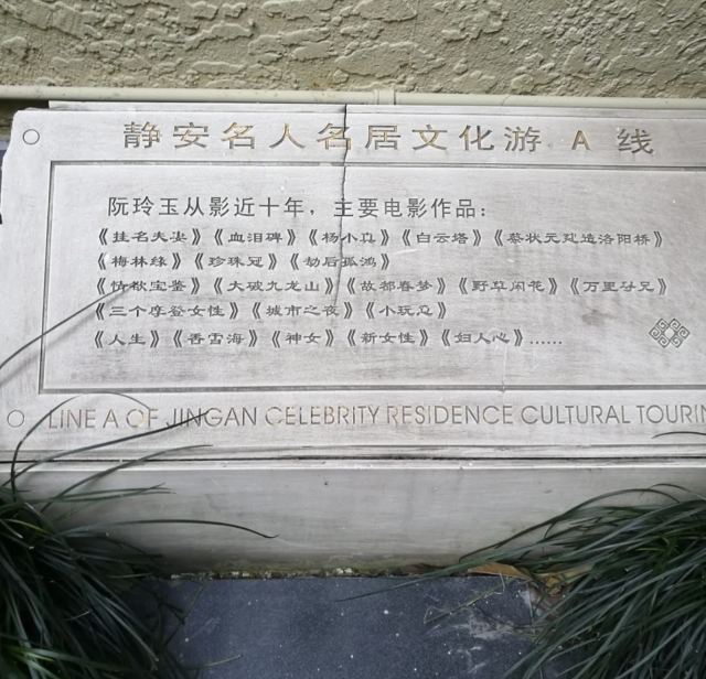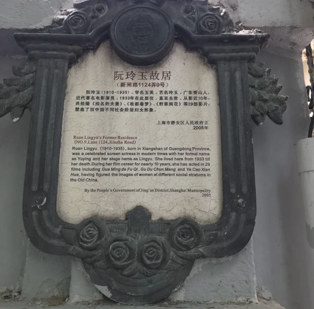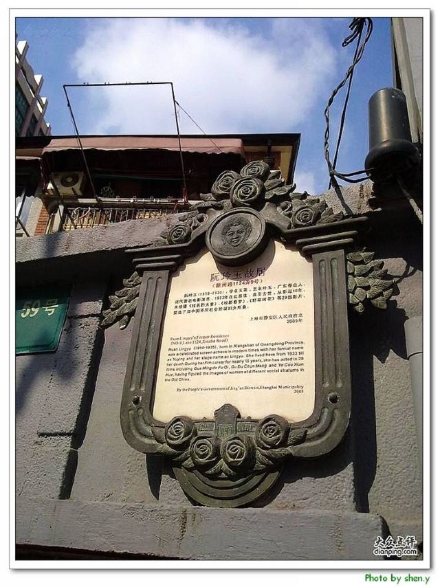新闸路1124弄9号(即沁园村)是阮玲玉曾经居住、生活过的旧居。据9号楼的邻居介绍,当年的茶叶大王、超级粉丝唐季珊弃别女演员张织云,用十根金条买下了这幢小洋房送给阮玲玉,一楼是阮玲玉接待朋友和客人的客厅,二楼则是她和唐季珊的卧室,三楼由她母亲和佣人居住。