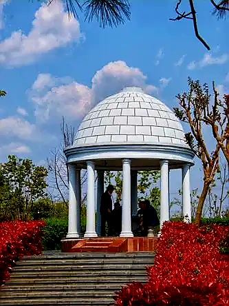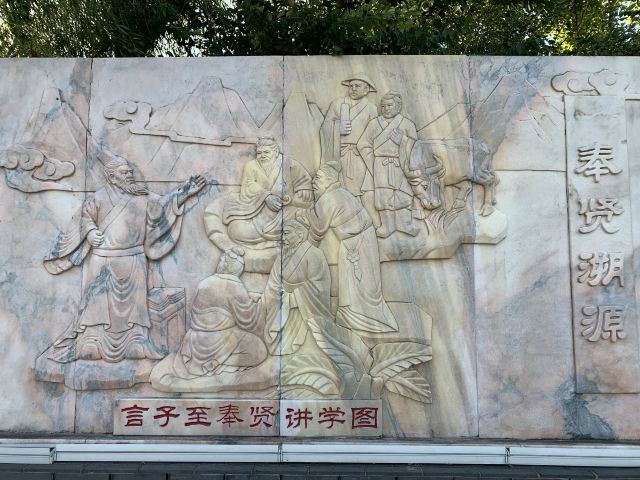 共分为伊斯兰园、雕塑园、法兰西园、现代园、稀有品种园、水园等11个园中园。从园门口的思贤印、颂贤壁到言子像, 都以时间主线为轴, 展示出“贤文化”在奉贤历史长河中逐步演变发展的过程, 让游客可以在移步换景中循序渐进学习了解“贤文化”。