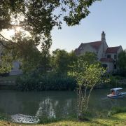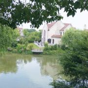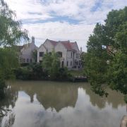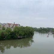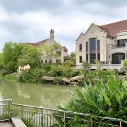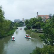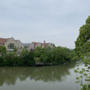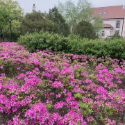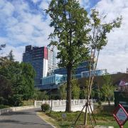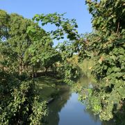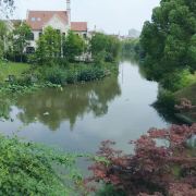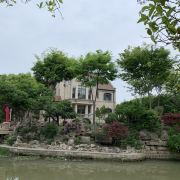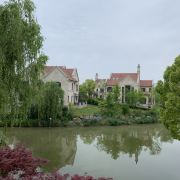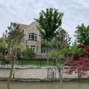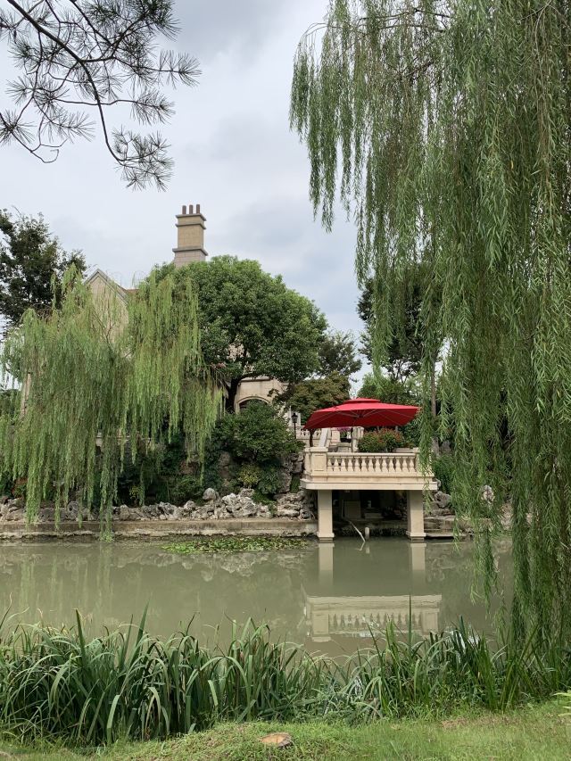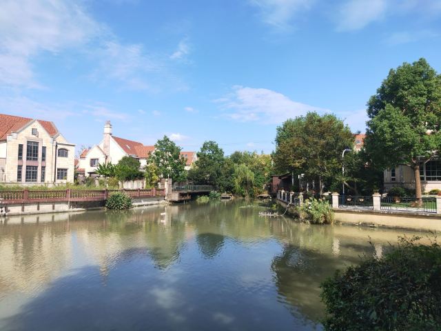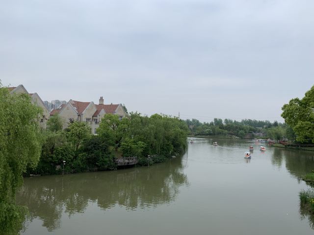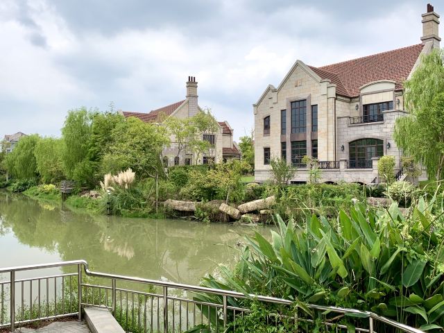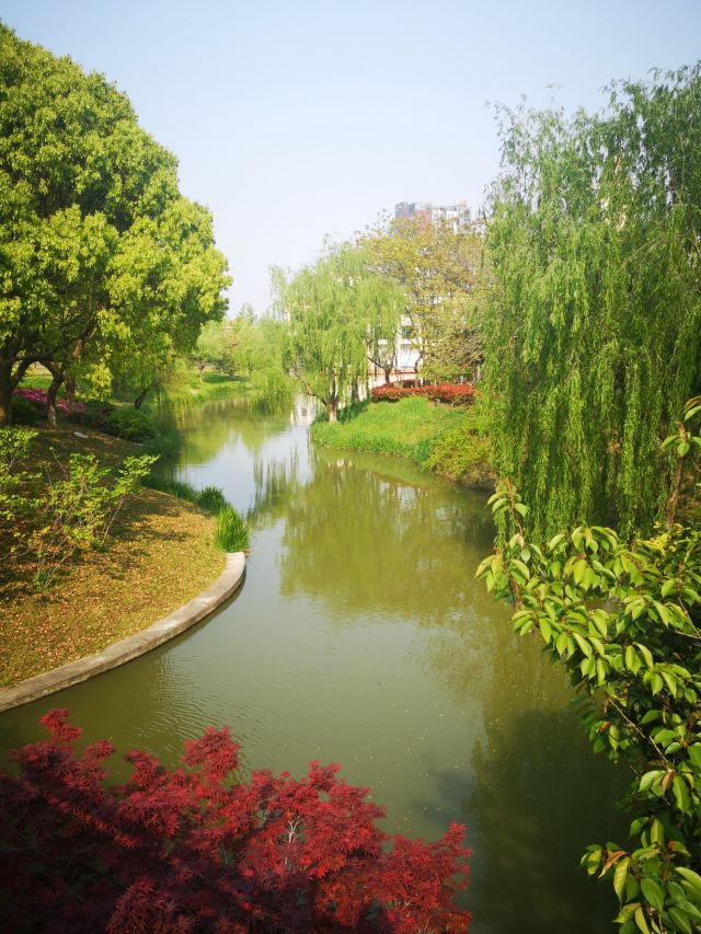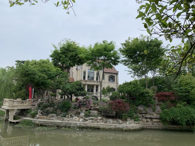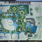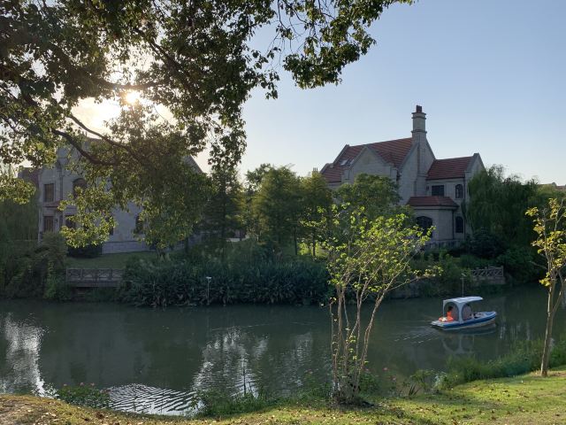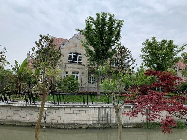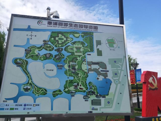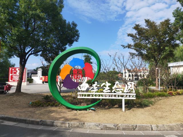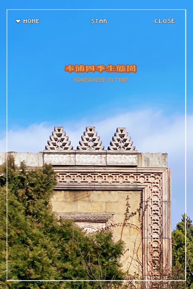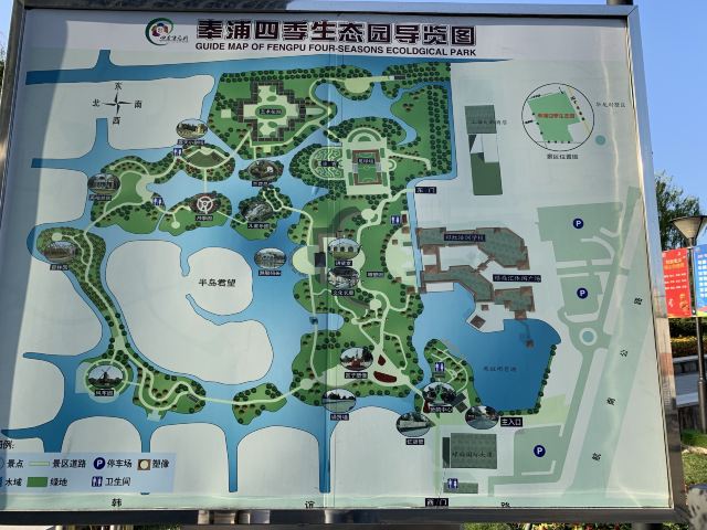 奉浦四季生态园由上海现代设计院规划设计,园内绿化覆盖率70%以上,颇具异域风光,被誉为“上海的唐顿庄园”。园内种植乔木和中层色叶、开花小乔木,又选择杏树为公园特色树种,配合其他各色花木,形成一花独放,百花争艳的景象。