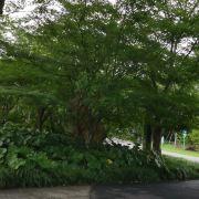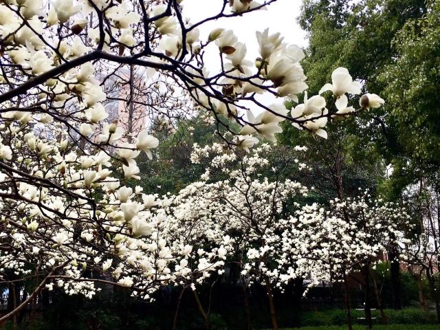 西门一侧是林荫道,另一侧为一条长115米的林带,林带的一端有一片开阔的棕榈林,林间置月牙形的紫玉兰、白玉兰花坛各一处,并设石凳、园椅若干,环境十分幽静。