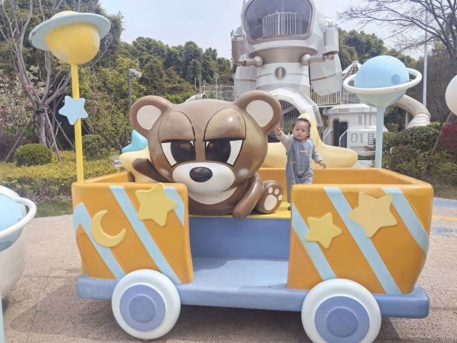 4分 满意适合七八岁的小朋友去玩,只要就是几个滑梯,脚蹬的卡丁车也还不错