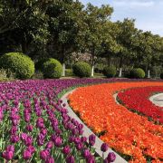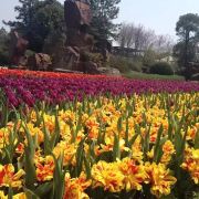 最大最多的郁金香品种的公园 4月最喜欢的花儿 几乎每年会来这里拍郁金香,今年培养的复叶郁金香比较多 颜色也有双色 钩边 齿轮状等各种不同,颜色也是最多款的 总会找到你最爱的颜色 大红 金黄 粉紫 当然好有大片的黑郁金香,暖棚里有各种花艺的百合展 还有一面玫瑰组成的国旗[强] ,郁金香大道每年会在这里留影 梧桐树在两边 中间是宽广延伸的各色带的郁金香花带 简直迷入其中;温室采摘也是很好的体验 可以看到各种温室花朵 蔬菜的培育,旁边的各种景致的公园 也有桥廊 各种花儿 勇敢者的道路 悠闲暇意;景区也有几处就餐处 咖啡小点 慢慢赏花拍照 采摘春天