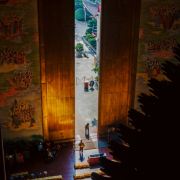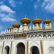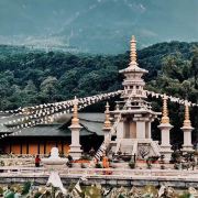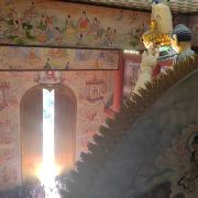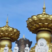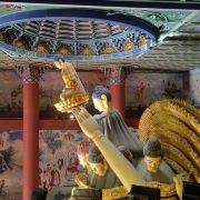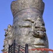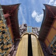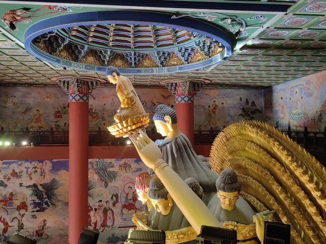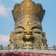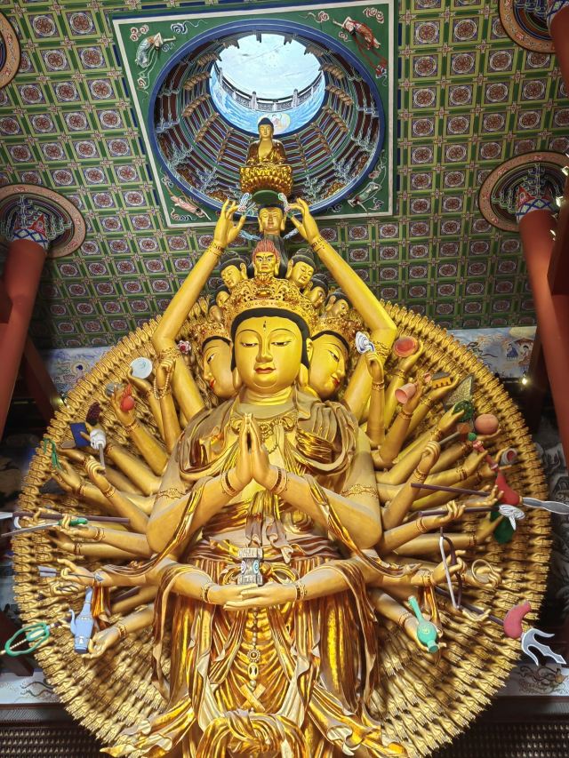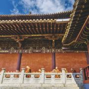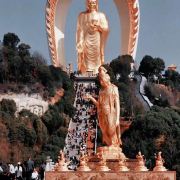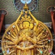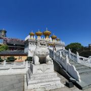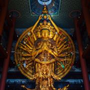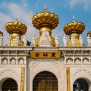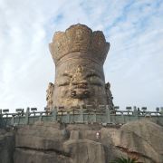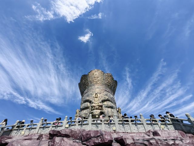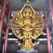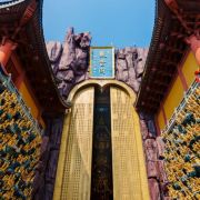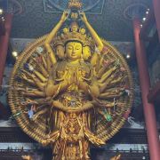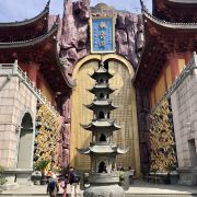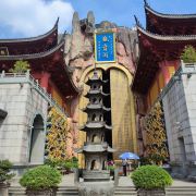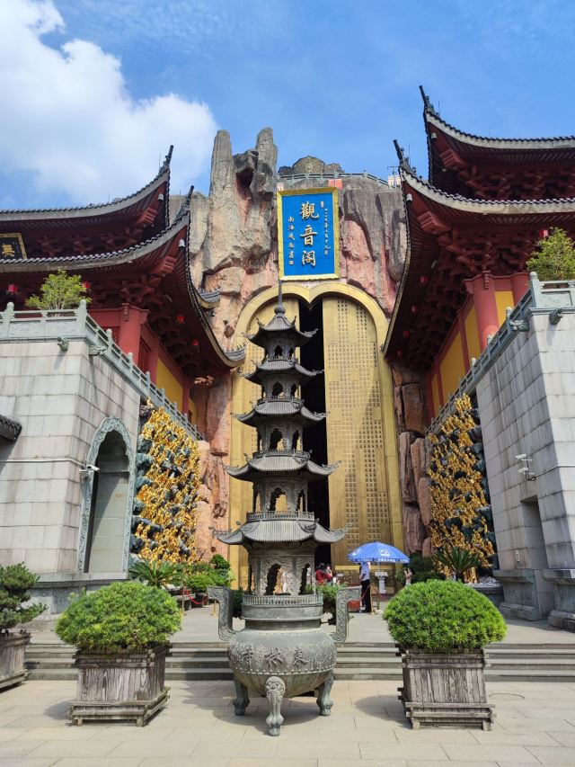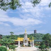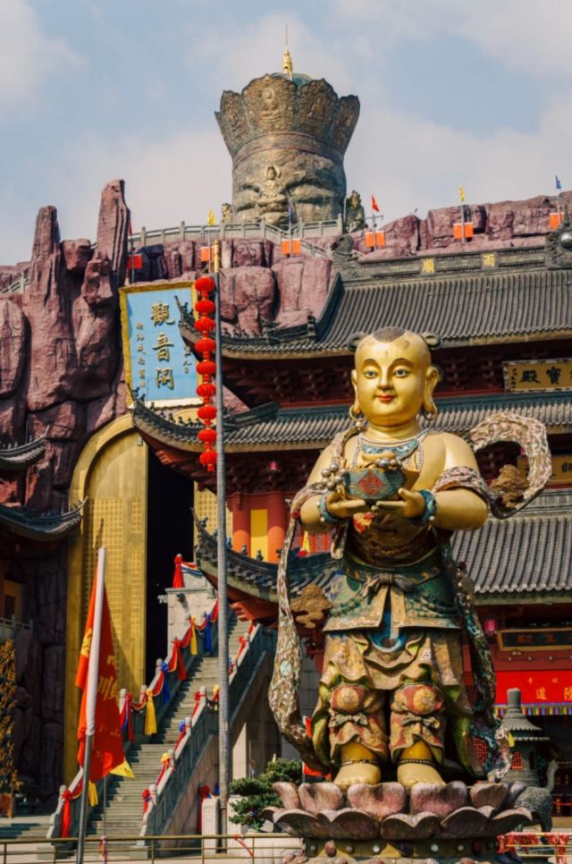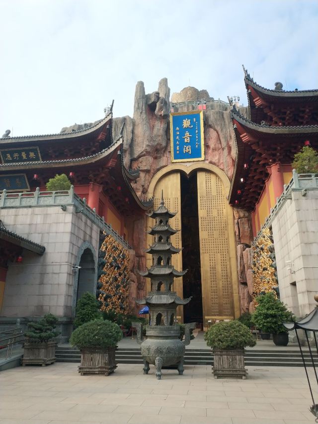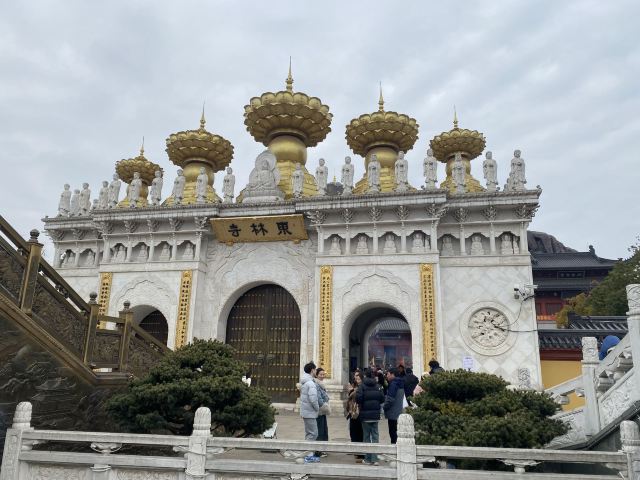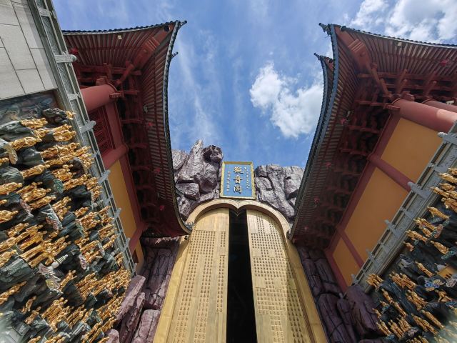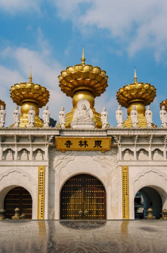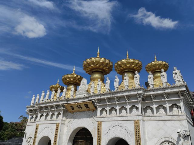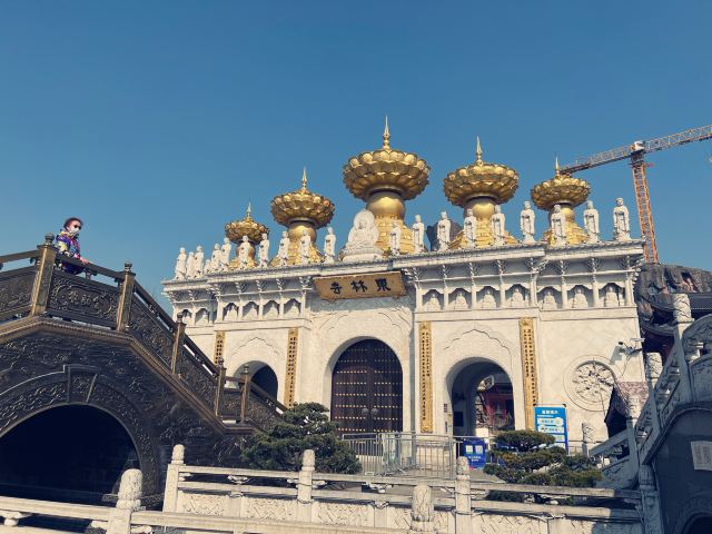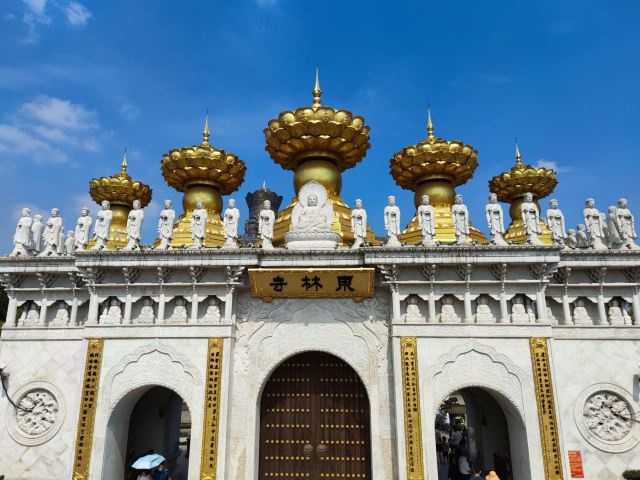 微信小程序东林寺是上海金山区的有名寺庙,位于上海西南的朱泾镇,原名观音堂,于元朝至大元年(1308年)创建。不同于那些朴素的古寺,东林寺呈现的反而是恢宏气势,在这里可以看到大世界基尼斯之一“较高的铜门”——千佛门、较高的室内千手观音圣像、国内享有的室外五百罗汉山,可以感受到不一样的佛教氛围。东林寺七百年来香火长盛,但却因遭遇战乱、火灾而屡废屡建,在后来的一次重建前,整座寺庙只剩下一座大殿,但香火依旧。近年来经全方面重新扩建,崭新的东林寺于2007年呈现在人们面前,当时更由中国佛教协会会长一诚法师等佛教界高僧大德举办了启明法会,为民祈福,至今延续着旺盛的香火。如今的东林寺建筑风格独特,寺庙主体建筑依着一座高大的仿假山建筑而建,形成山寺合一。整座寺院分圆通殿、大雄宝殿、观音阁、善财阁、佛头像、千佛门、钟楼、鼓楼、金愿桥、五佛冠、金莲池(景泰兰善财童子)等景点。进入东林寺需先过三门,三门结合净土宗的思想,是国内佛寺中仅有的、庄严的三门;而后可看到金莲池,池正中为国内的景泰蓝佛像尊“善财童子”,堪称“东林一绝”;寺内还有千姿百态的五百罗汉和中国佛教“千佛门”,都是东林寺的特色。东林寺寺内供奉的灵雨观音与杭州灵隐寺、无锡灵山大佛并称中国佛教“三灵”。圆通宝殿中是用黄铜制作而成的“殿中殿”,殿中供奉的是一尊整块用1.8吨重的新疆和田美玉雕琢而成的元代“灵雨观音”圣像,造像庄严,堪称镇寺之宝。