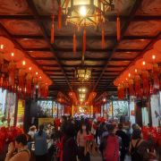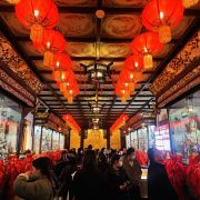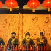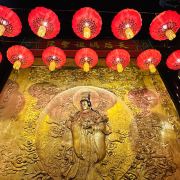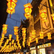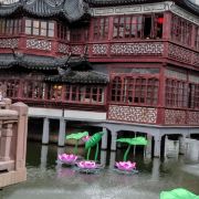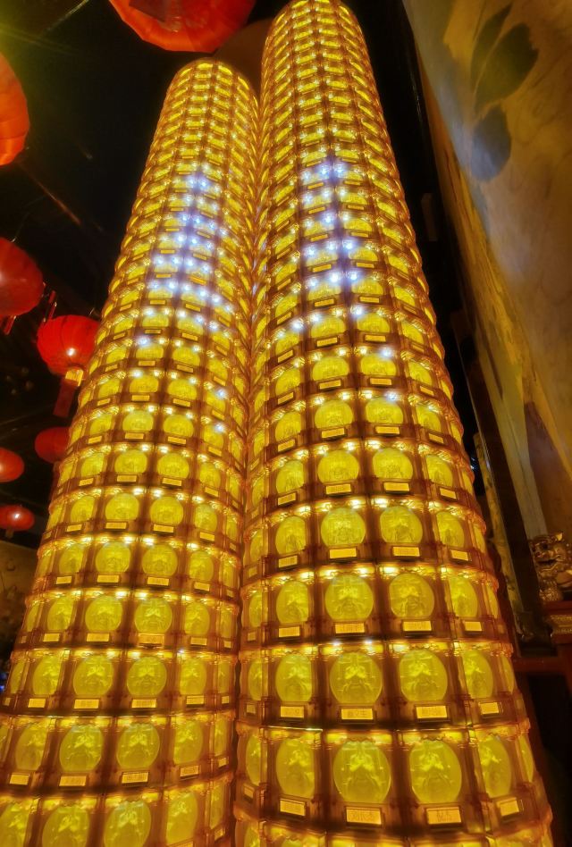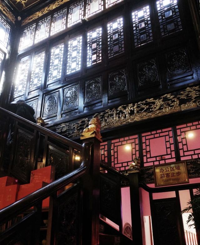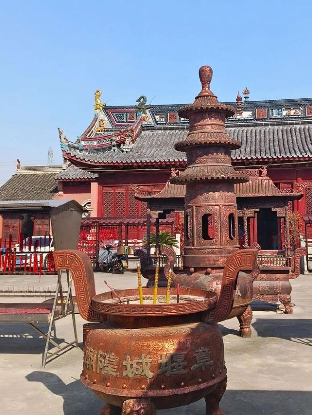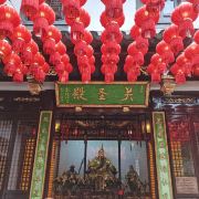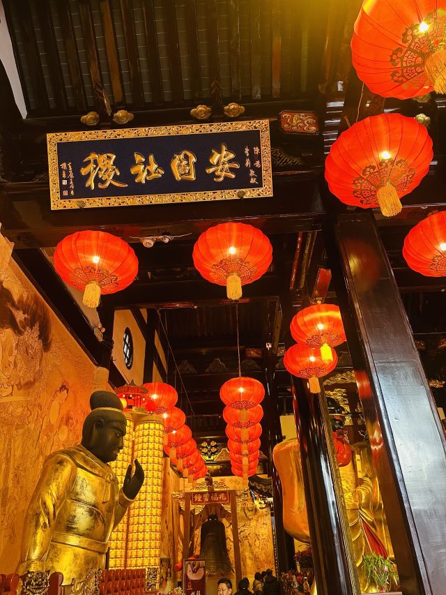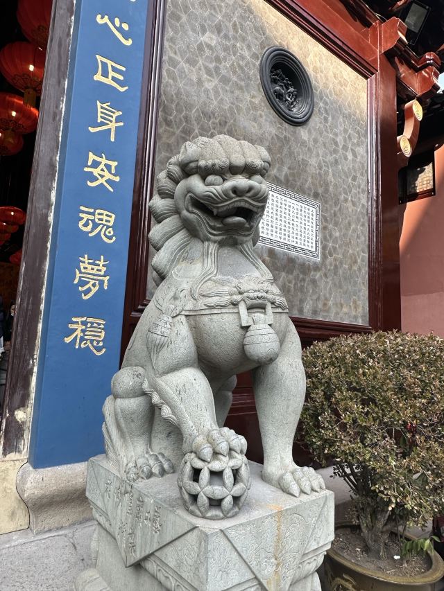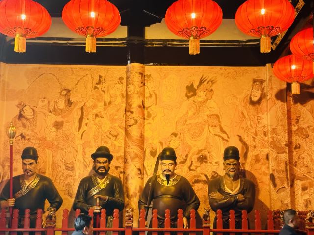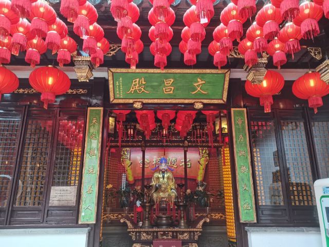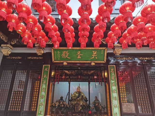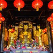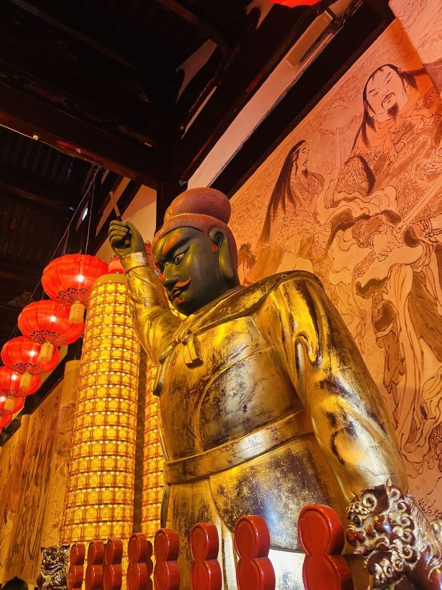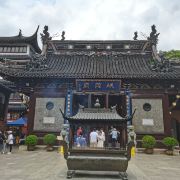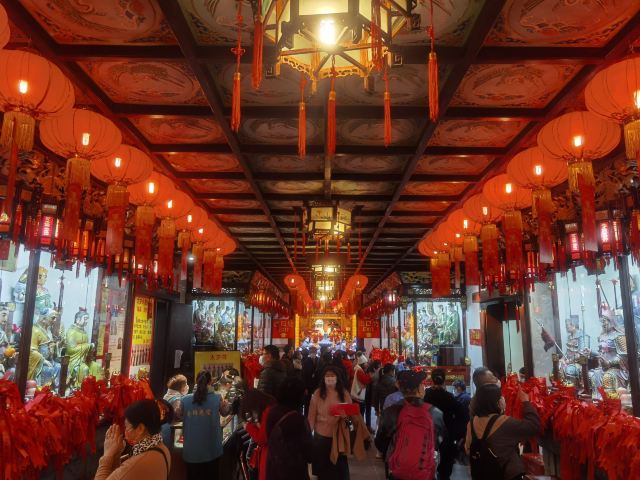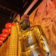 上海城隍庙始建于明代永乐年间(1403-1424年),比豫园还早一些,但在“文革”时期遭到严重破坏,后经修复重新恢复了全貌。观内现有大殿、甲子殿、财神殿、慈航殿、城隍殿等九个殿堂。大殿正门上悬“城隍庙”匾额,内供奉金山神主——汉代博陆侯霍光大将军坐像,左首为文判官,右首为武判官,次为日巡与夜查,日巡、夜查以下为八皂隶。