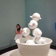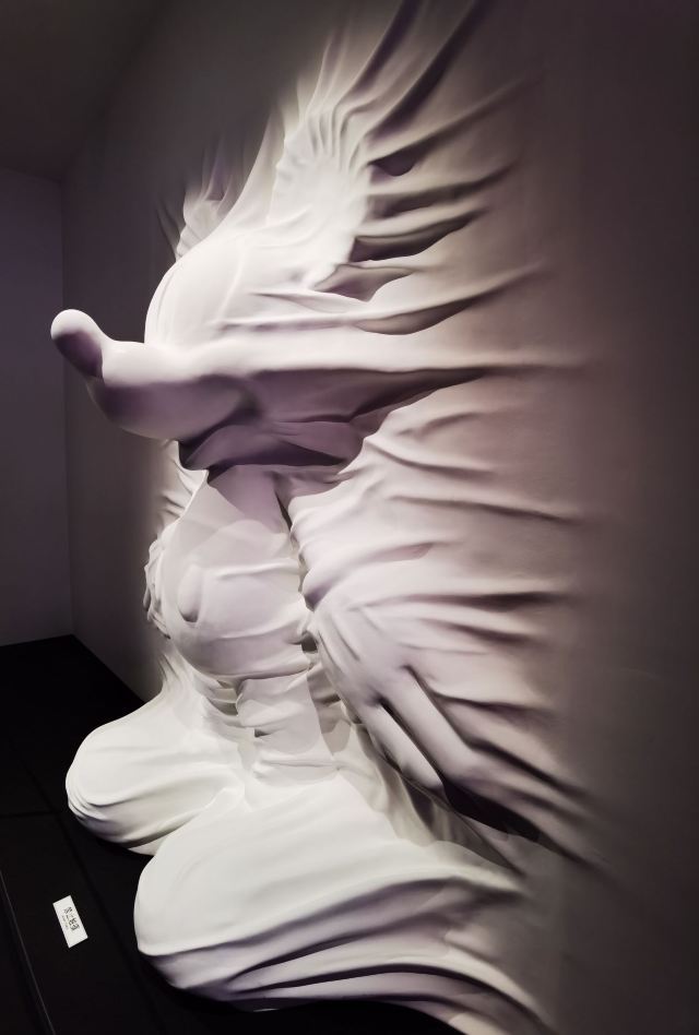 “神话”是本展览第一部分的中心主题,包括前厅、大厅、1-3展厅和场外空间。我们在这里看到的是由不同国家艺术家创造的各种非再现诗的艺术表达,从极简的观念艺术到富于视觉冲击力的装置作品和互动式呈现。随后的4-7展厅则以“历史”为主轴,在年代框架中展现中国当代艺术从1980年代到当前的历程。这两个方面的叠压和交错,显现出当代艺术的巨大延伸维度和丰富的想象空间。