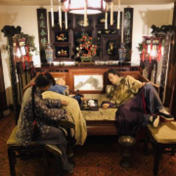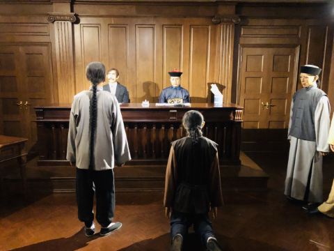 顺着游览路线前行,逐渐懂得了此馆的妙处--这里使用了融物于景的场景化展示手法,每一区块的陈列对象都是以人为本,将人物塑造于情境之中,每个人物都是惟妙惟肖的蜡像,皱纹和指甲这些细节处都雕琢的趋近完美,匠人心血将整个氛围烘托的就像置身其中一般,灯光也随着不同的场景不断的变幻,辅以奇幻科技,风云奇诡的夜上海一幕幕的在你眼前活了起来--