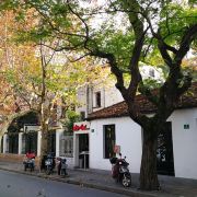 走路,是较能贴近城市的一种旅行方式,尤其适合没有行程、隨性出发的旅行。桃江路西侧有一段长达200米的“弹格路”,整条路都是靠手工慢慢将卵石、块石铺筑而成,这是老上海的特色。桃江路的香樟花园。当初为了保护这棵树,主人特別使用大玻璃拱门窗、並将房子围绕这棵树而建,此餐厅也因这棵树得名。相信坐在庭院中小酌一杯,会非常愜意。