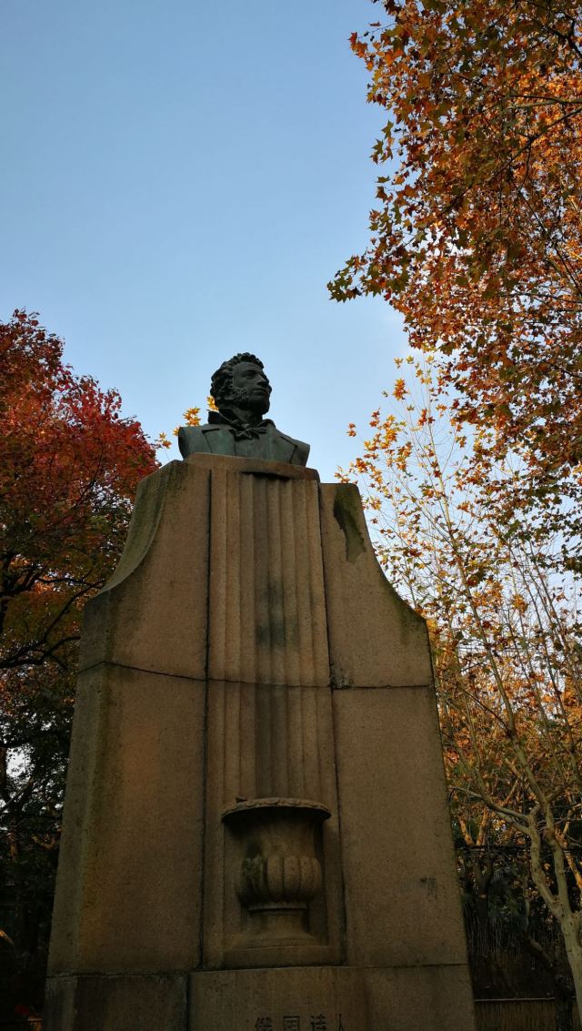 普希金纪念碑。桃江路1号旁边的三角形绿地中,耸立着5.6米高的普希金纪念碑,向世界文学巨匠、俄罗斯文学之父普希金致敬。