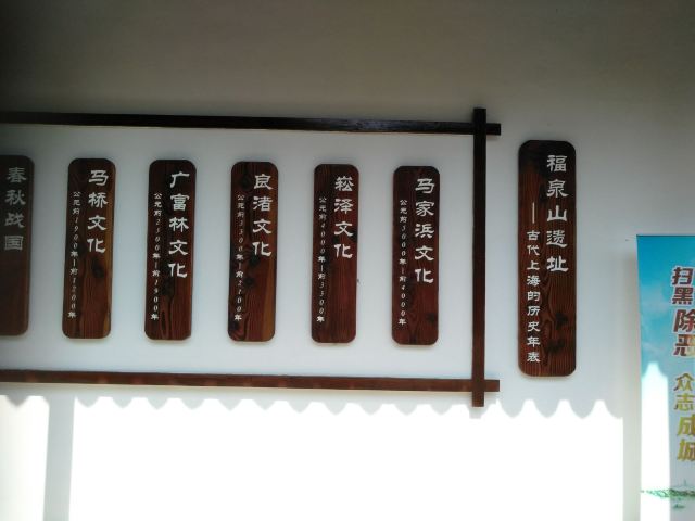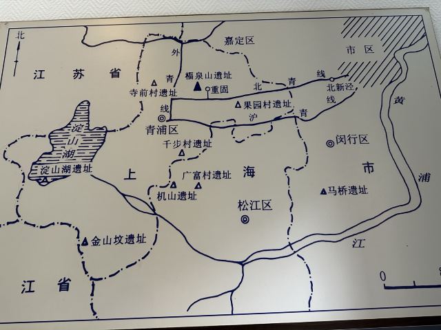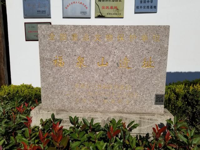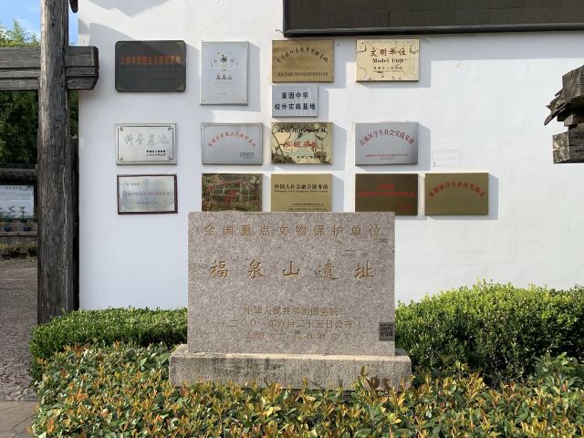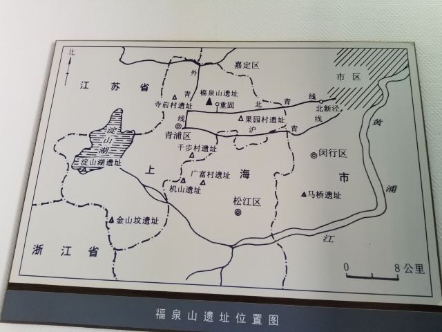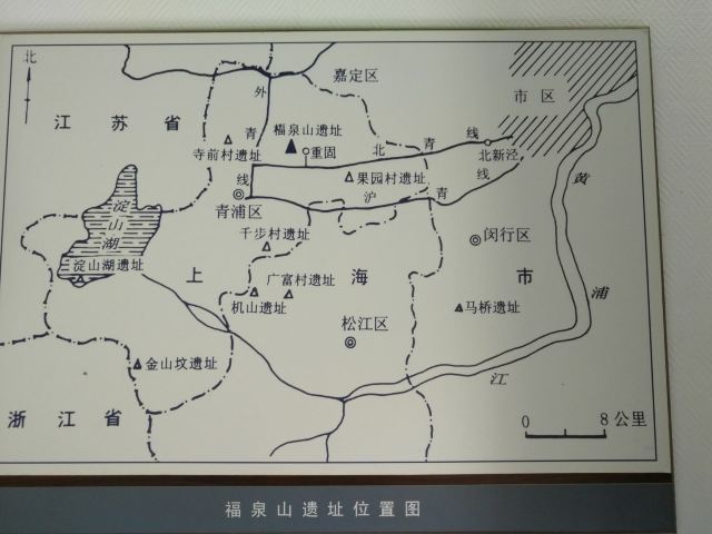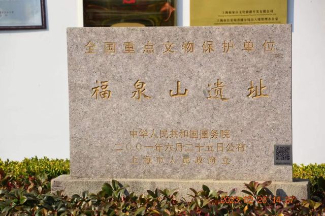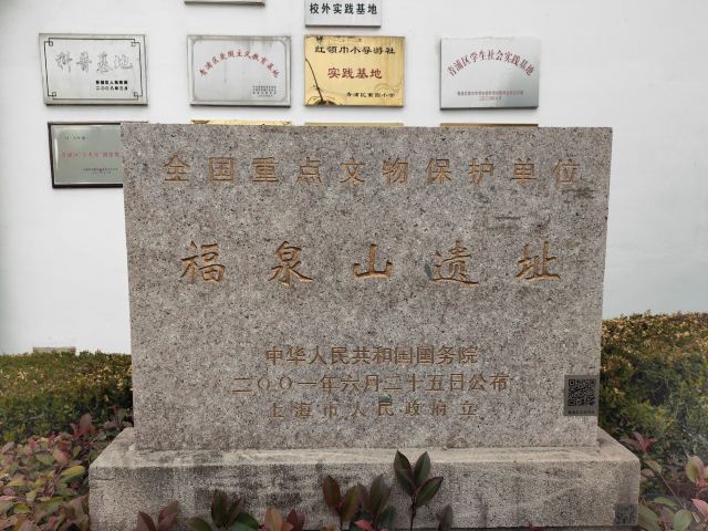 福泉山,曾名覆船山,又名薛道山,位于重固镇中心地段。福泉山呈不规则长方形,东西长94米,南北宽84米,高7.5米。考古发现证明,它是古代太湖地区在沼泽地带中的一种典型的高台墓地,完整地保留了6000年以来各个时期的文化叠压遗存,内有丰富的新石器时代的马家浜文化、崧泽文化、良渚文化与战国时代的遗存,考古界一致誉其为“东方的土筑金字塔”、“古上海的历史年表”、“上海的发祥地”等。