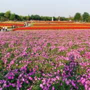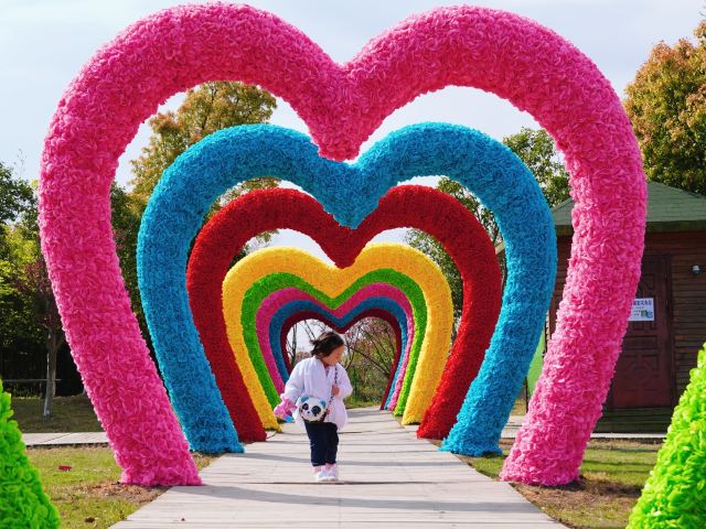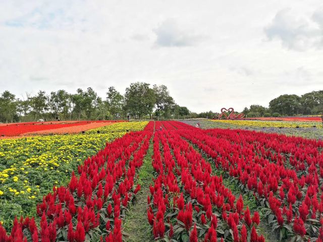 园区以生态花卉为主体景观,一年四季都有鲜花盛开。当这些不同颜色、不同品种的花卉同时绽放时,会形成震撼的彩虹花田,看上去非常赏心悦目,是和家人周末出游的好去处。