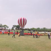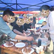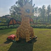 除了赏花,园区内还有儿童乐园、动物区等区域可以游玩。再往另一边走有小河,这里可以租脚踏船。另外,河边有个烧烤区,非常适合酷爱户外烧烤的游客。烧烤区做成一个个亭子,桌子中间都有预留的放烧烤炉的方孔,每个亭子边都放着垃圾桶,边上还有水池和自来水供烧烤的人清洗,十分周到。