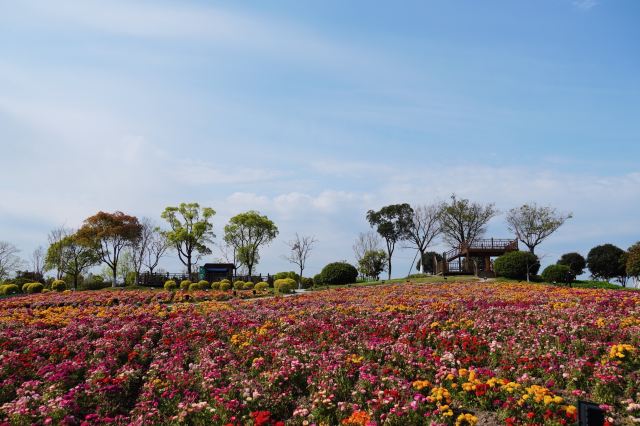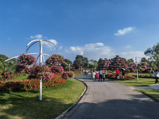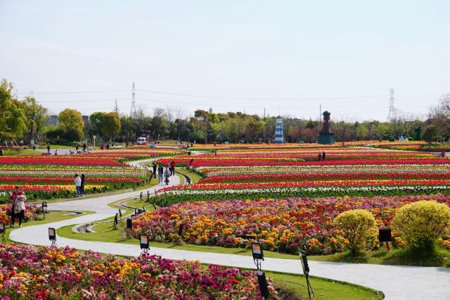 园区种植花卉苗木面积超过10万平米,种植品种达百余种。花卉种植特色主要体现在每年每季的花卉品种和造型都会不断调整,并采用大条型、大色块实现巨大的视觉冲击力,让游客在不同的时节都能欣赏到不同的花海景观。置身其中仿佛流连于花的海洋,震撼力十足、美不胜收。