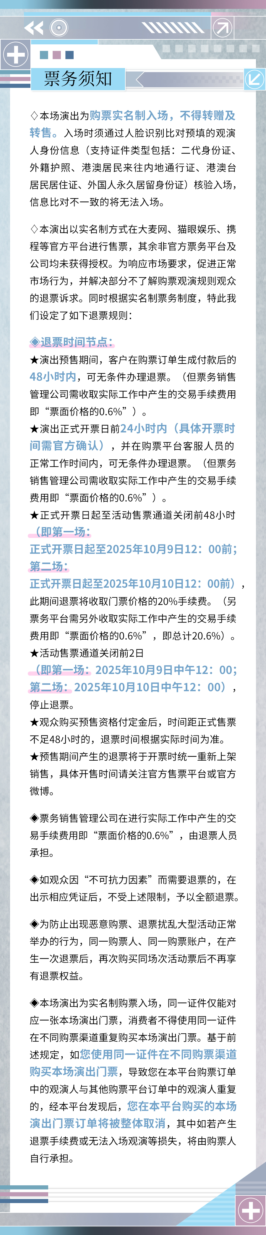 本次演出开票时间:9月30日19:00,预售期间产生的退票将于开票时统一重新上架销售