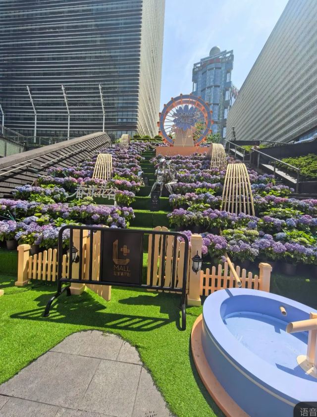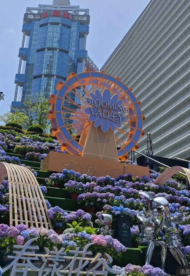 5分 超棒陆家嘴的春日浪漫,藏在钢筋水泥与繁花绿意的奇妙碰撞里。L+MALL的白色穹顶之下,旋转的线条勾勒出现代建筑的空灵美学;而户外下沉广场,“春漾花谷”把1300㎡的空间酿成了绣球花海,蓝紫粉白的花团沿着阶梯铺展,与摩天楼的玻璃幕墙相映成趣。巨型花形摩天轮装置,为这片都市秘境添上童话注脚。在这里,既能触摸金融中心的现代脉搏,也能一头扎进花海,把春日的温柔揣进心里。