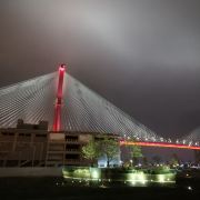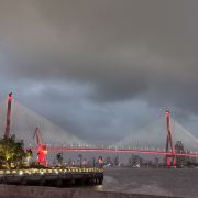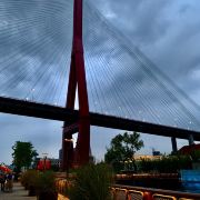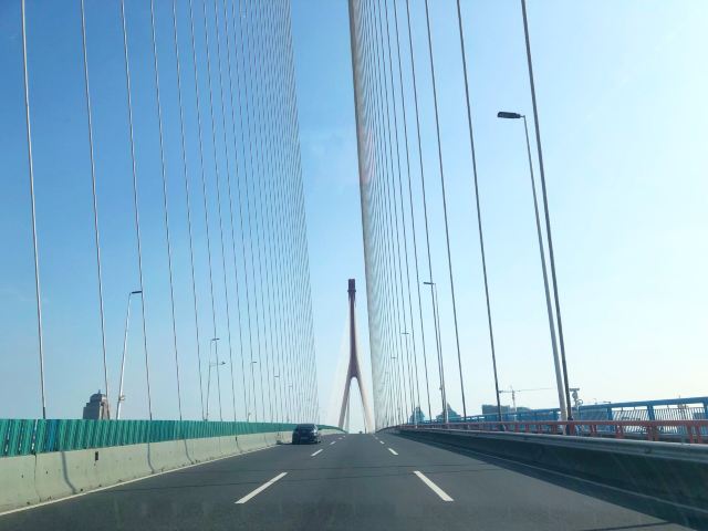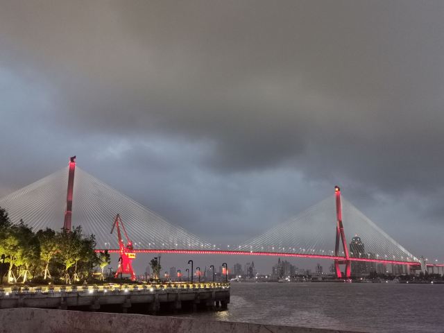 5分 超棒杨浦大桥,位于上海东北部,横跨上海的母亲河黄浦江两岸,是九十年代在黄浦江上建造的第二座大跨度斜拉索大桥,建成通车于1993年,主桥全长1172米,北起浦西杨浦区黄兴路周家嘴路附近,南至浦东大道,桥面为双向六车道城市快速路,后与上海内环高架路连接,成为内环高架路的一部分。