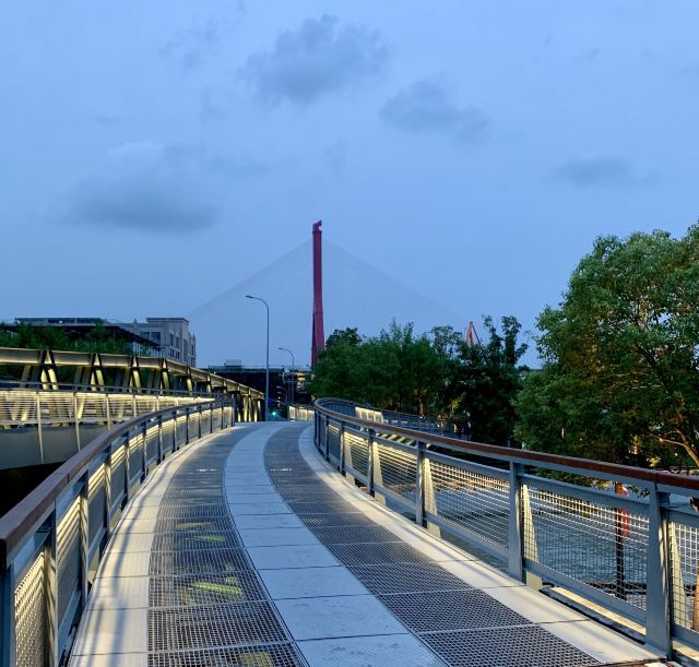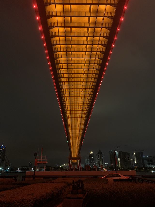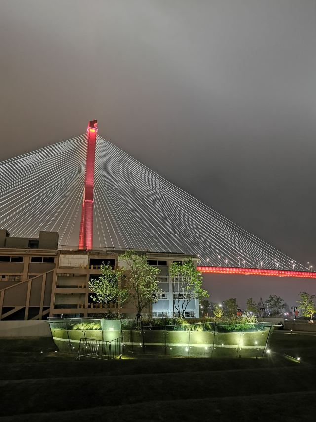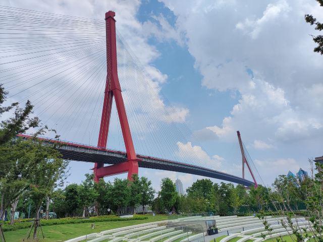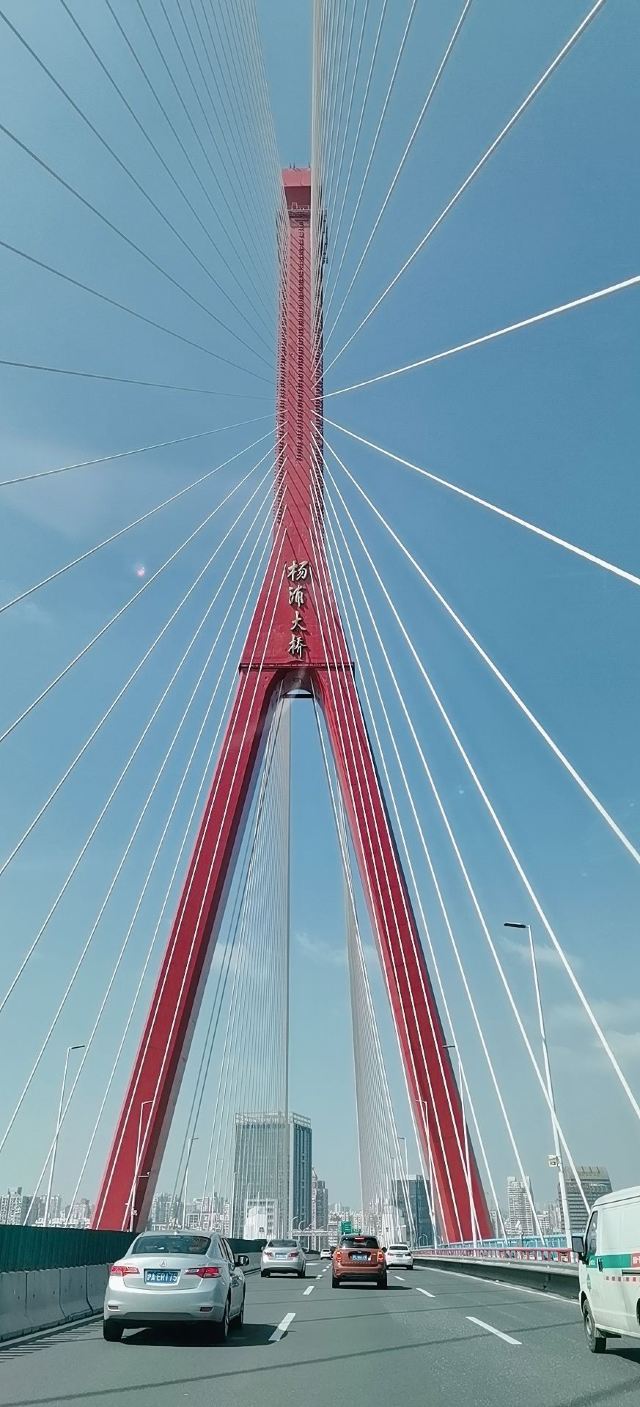 杨浦大桥Yangpu Bridge始建于1991年5月1日,1993年9月15日竣工,于1993年10月23日正式通车运营,是斜拉特大公路桥。