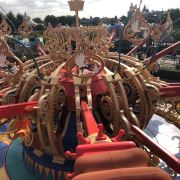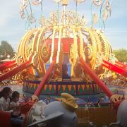 3分 不错小飞象就在梦幻城堡前面,和明日世界的喷气包飞行器一样,玩法也一样,会有个按钮让你自己控制飞的更高一些,只不过这个看着更加幼稚一些,因为小飞象的可爱,和颜色的五彩,作为背景拍照片的话,白天要比旋转木马更合适一些。