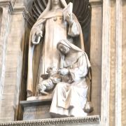 圣彼得大教堂圆顶内径约42米,覆盖了整个大教堂。对于这个大圆顶,曾有过百年的波折,先是布拉曼特于1506年设计,1514年他去世后拉斐尔接替了他。六年后,拉斐尔也去世了,教会对教堂顶部借鉴哥德式的设计,强调黑暗与光明的对比,采用了玫瑰花窗,于是出于对教堂入口处的光线对比效应的考虑,圆顶被取消。后来米开朗基罗在71岁高龄时接替了这项工作,以“对上帝、对圣母、对圣伯多禄的爱”的名义,恢复了圆顶。圆顶廊檐上有十一个雕像,耶稣基督的雕像位于中间,廊檐两侧各有一座钟,右边的是格林威治时间,左边的是罗马时间,大圆顶是罗马的象征之一。