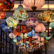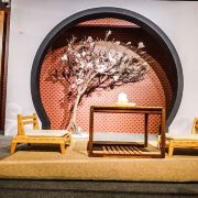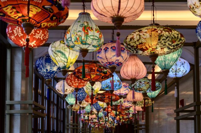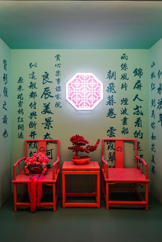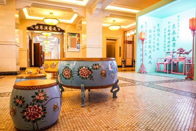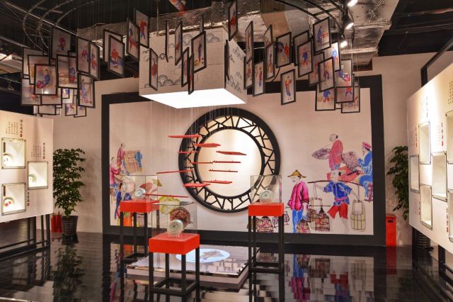 2楼戏曲茶馆和互动非遗馆及“非遗守护馆”,“非遗守护馆”,非物质文化遗产精品陈列四周为精品实物陈列展窗,以实物展陈和文字解说相结合的方式,展示、非遗资源和近年来的保护传承成果,走廊通道里,挂满了非遗元素的灯笼,非常适合拍照。