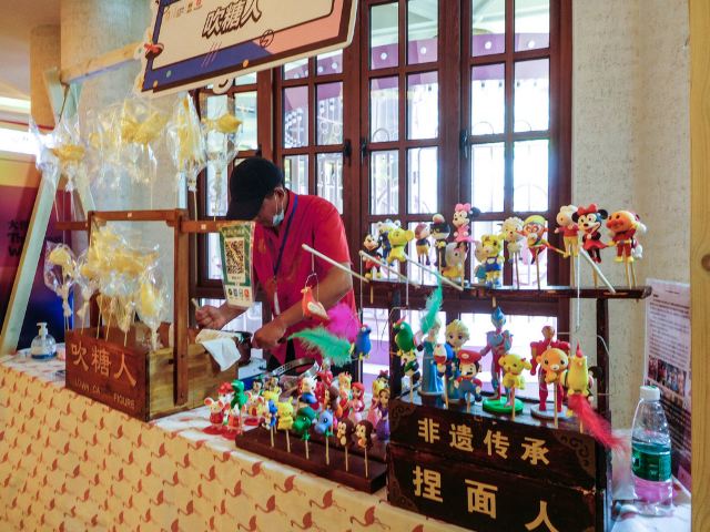 3楼走廊很有特色,漂亮的彩色玻璃门窗,大世界报,大世界初创时,预告众多戏曲的大世界报,网红打卡再现,机器跑马,当年的大世界网红打卡圣地,颇受上海人的欢迎,既符合城市品味,又暗含西部豪情,非遗展出:吹糖人、面塑、画糖人,好多非遗的趣味互动,都是我们小时候的回忆,不得不感叹匠人的精湛手艺。非遗主题区域,满满的中国风,超级紧适合拍照打卡