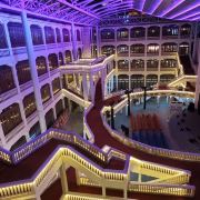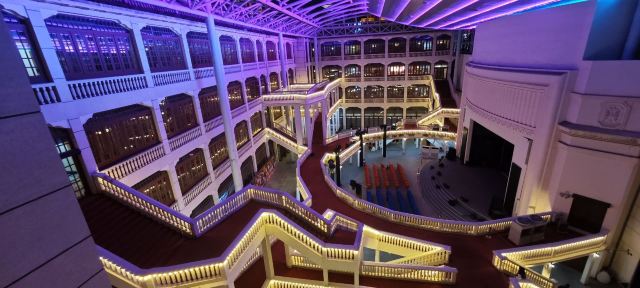 一踏进大门,儿时的场景重现,还在老地方的12面哈哈镜,无论年长的还是年轻的参观者,个个都仿佛回到了童年,几代上海人的温情与欢笑就在镜中传递,作为大世界的经典记忆,这些哈哈镜明年就100多岁了。中庭回廊和大舞台构成了独特的建筑风貌,蜿蜒交错,上下贯通,回廊处可直接观看大舞台的表演经典大舞台,杂技、曲艺、歌舞群艺等传统类的文化节目,将在此轮番上演。