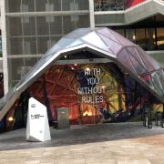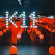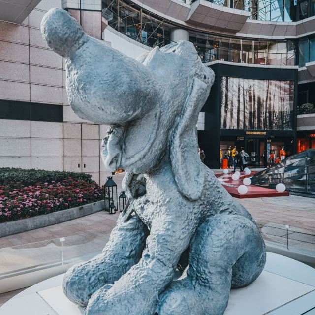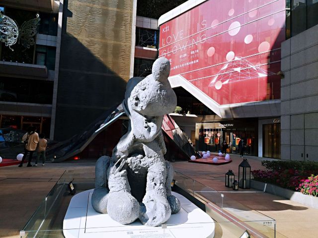 【现场体验】到了K11乘观光电梯直达6楼,验票后进入灯光秀现场:简单的200多颗白色地灯在车库改造的空间中随着音乐起伏闪烁,也就变化出红白二色,背景就是凹凸不平的镜面反光。看了一会儿毫无所谓的独一无二的光影效果和纯粹的浪漫与温柔看点,纯属噱头多过实质内容的展。如此简单且简陋的展还被冠以“爱•发光”的名义还不及门口那只被青铜腐蚀的坐狗更直观些!