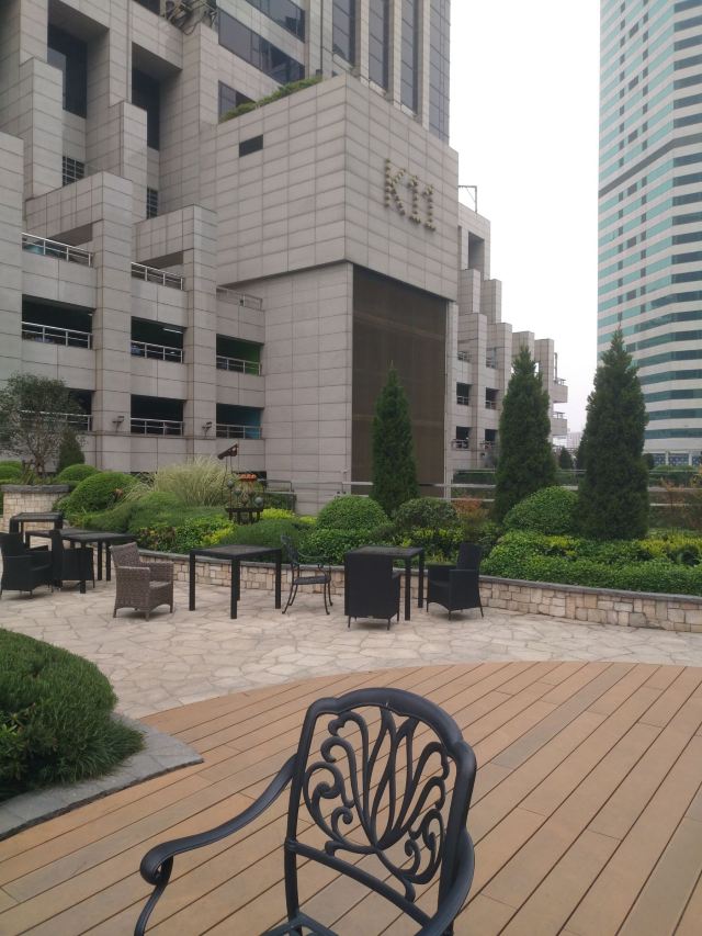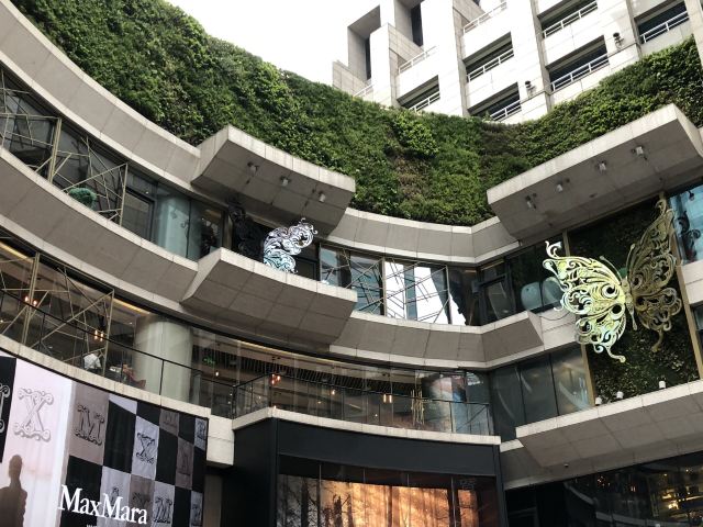 该空中花园位于K11购物中心6楼,与位于6-9层的停车场相连,为顾客提供一个休闲观景空间,可在此看到淮海路与延中广场等美丽的城市风景。