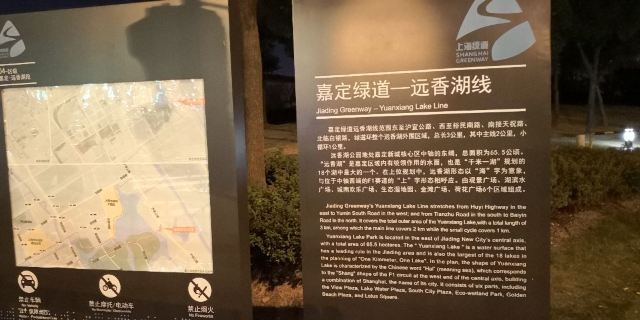 远香湖是嘉定新城核心区域的开放式公园,含人工湖面积,占地达60万平米。