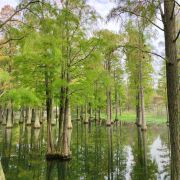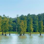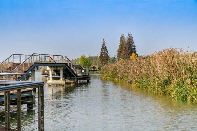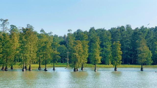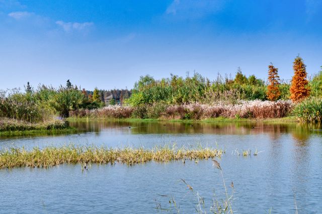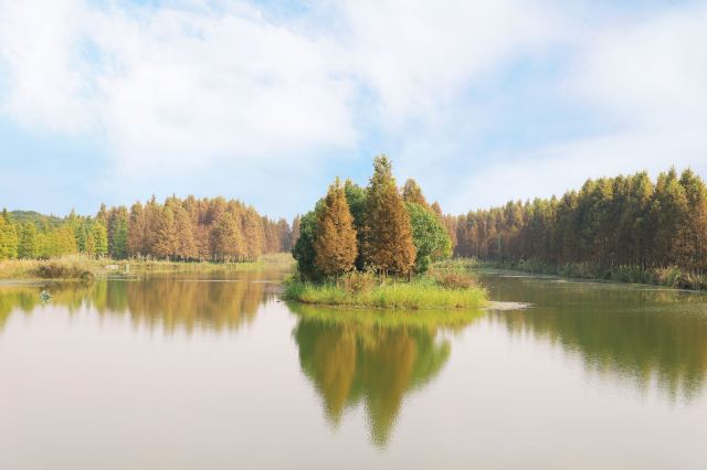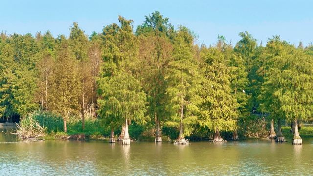 以38年前种下的水上池杉林为“镇园之宝”,依托大莲湖生态修复工程,青西郊野公园内碧波荡漾、杉林鹭影,“湖、滩、荡、岛”纵横交错。
