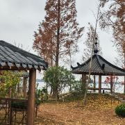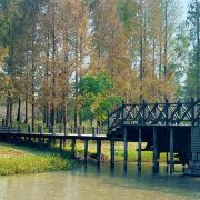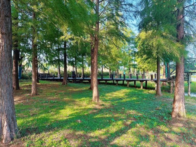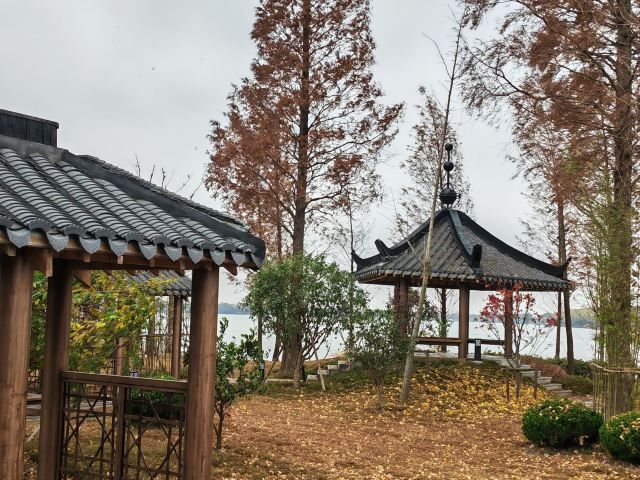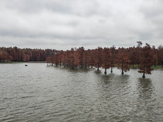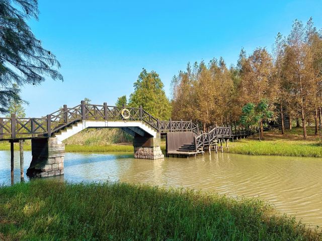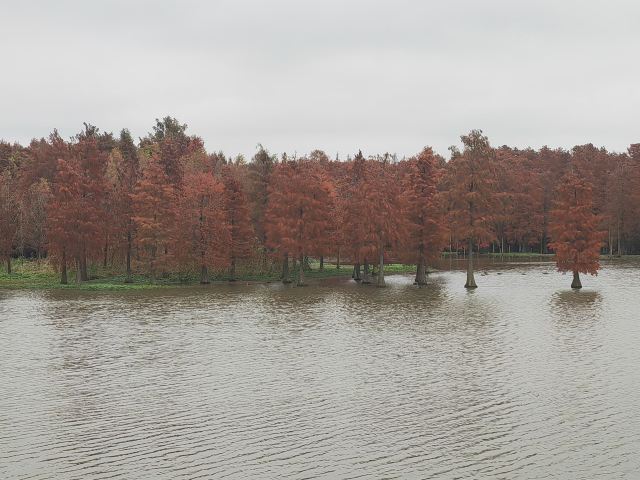 👍项目推荐:水上森林绝对是必打卡项目,从北门进来步行三五分钟就到,站在岸边向森林深处望去,各个角度都能取到令人满意的景致,可以拍出纵列挺拔的效果,可以看到湖水蜿蜒曲折一直到达视觉的尽头,也可以看见水鸟在林中穿梭在枝头歇脚的可爱模样,去的时候正好是阴天,火红的水杉,深沉的湖水,一切都是那么的静谧,连我们都不敢大声说话,生怕打扰到它😄😄。大莲湖面积很大,有栈桥通往湖中小岛,湖中芦苇摇曳,鸟儿时而翱翔时而停歇,一种心旷神怡的感觉,岛上的廊亭也是个休憩的好地方👍👍。如果慢慢逛,公园可以走上一整天,是节假日的好去处。