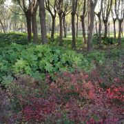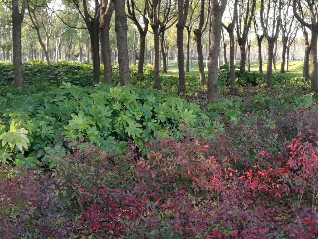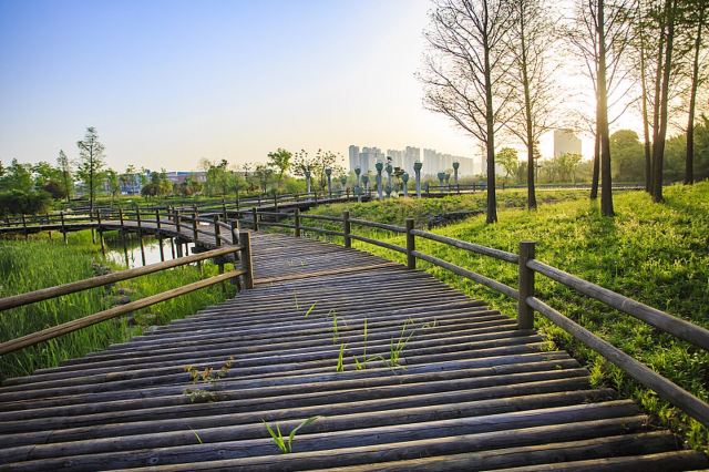 园中有十余座景观桥,布局心思巧腻,有各具特色的乔木、成片的灌木和植被,形成了如落樱缤纷、竹深荷静的景观意境。公园内还设有儿童森林探险区、欢聚休闲林、两片大草坪,供游客在草坪上休憩、野餐、游戏、搭帐篷,享受郊野的乐趣。