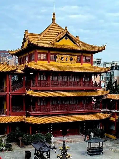 二严寺又名“佛阁”,始建于元代,占地7000平方米,至今已有800余年历史。寺内原有一座由百年樟木雕刻而成的千手千眼观音立像,可惜在“文革”中被毁。古寺于1993年因市政建设迁至现址,并与江海镇张翁庙合并。寺庙由大雄宝殿、玉佛楼等建筑组成。寺内植有宋代古银杏树雌雄两株,至今依然枝繁叶茂,远近闻名。涅磐经十七曰“二种庄严”,一者智慧,二者福德,称为“福智二严”,故取名“二严寺”。