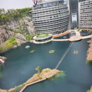 深坑秘境乐园-上海世茂精灵之城主题乐园依天马山深坑而建,融合特有的崖壁的自然资源,结合室内室外相结合的概念,打造出独特的深坑内酒店奇观的主题游乐园。