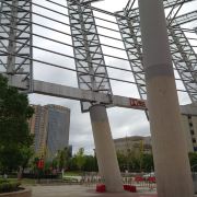 静安新体育中心,位于上海的汶水路。新体育中心的规模非常大,拥有综合体育馆、篮球场、排球场、网球场、乒乓球场、羽毛球场与游泳馆等场馆设施。其中,足球场宛若鸟巢造型的穹顶,与周边中环高架及高层居民楼融为一体,仿佛是一座“天空之城”。