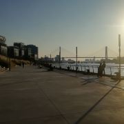 夜晚,漫步滨江大道,浦江两岸华灯齐放,幢幢大厦晶莹剔透,五彩缤纷,江中巨轮引船高歌,令人赏心悦目。2016年,滨江大道沿黄浦江的两岸贯通,是上海市政府把原来工厂、码头改造成市民观光娱乐的滨江大道。
