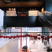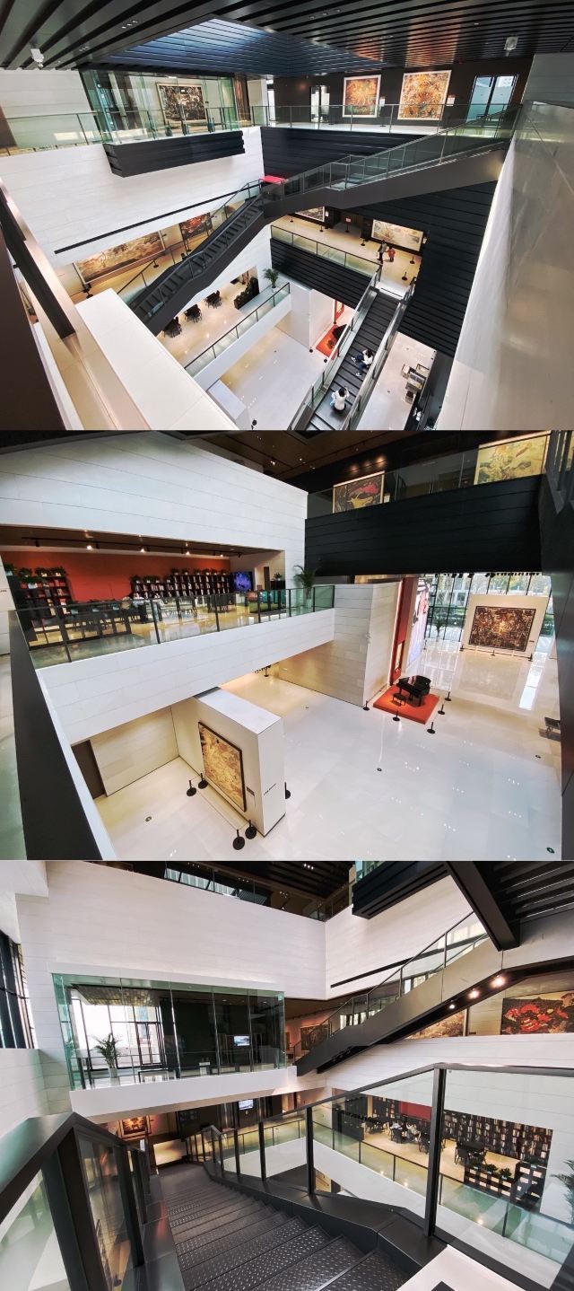5分 超棒二楼和三楼超高落地窗的设计,将虹桥绿地的风景纳入视野,非常的漂亮。这里的楼梯很有视觉延伸感和冲击力,无论是正面还是侧面都是一道风景。每个楼层的楼道和转角都有关于中国神话故事的画作,比如盘古开天辟地、神农尝百草、精卫填海等等