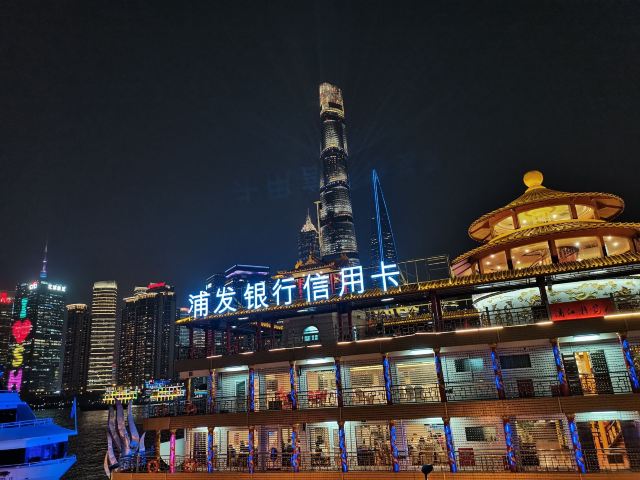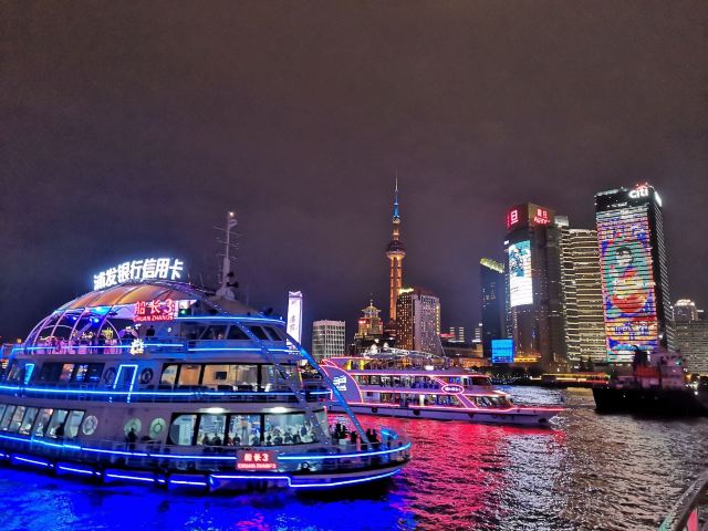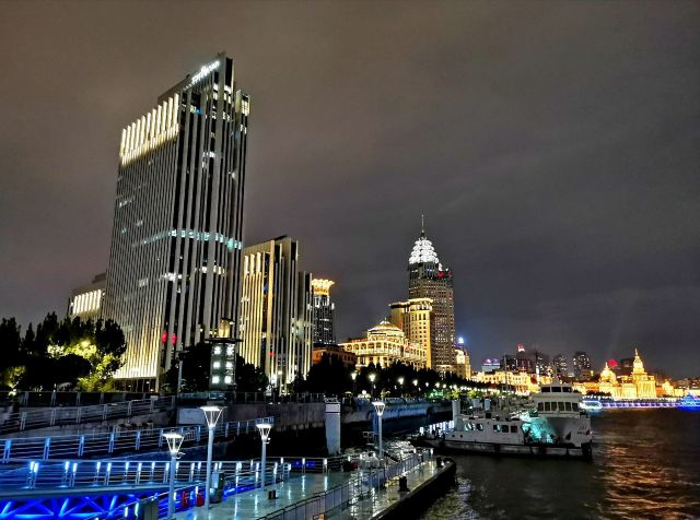 在十六铺码头景观平台,放眼望去可以一览无余的观赏到黄浦江的美丽夜景。