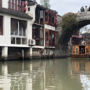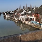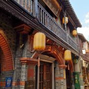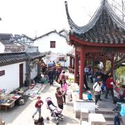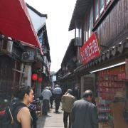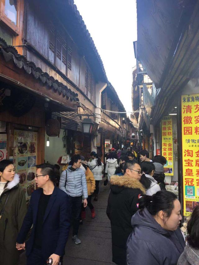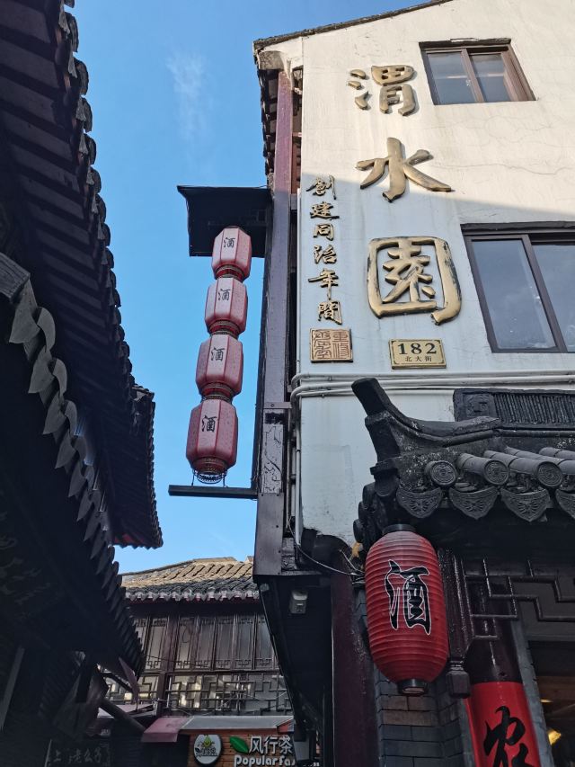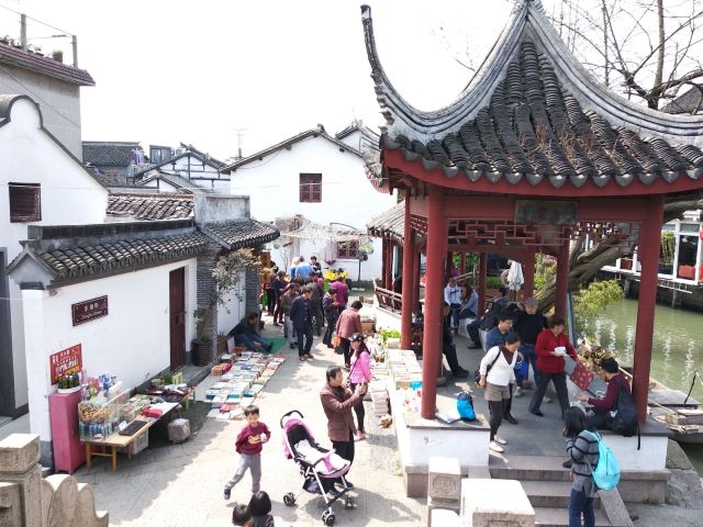 北大街,又称“一线街”,誉称“上海明清第一街”,距今已有四百多年历史,全长两里多路,其东起放生桥,西至美周弄的三百多米,是富有代表性的明清建筑精华所在。这里,旧式民宅鳞次栉比,粉墙灰瓦错落有致,窄窄的街道曲径通幽,石板小路蜿蜒不断,老店名店两旁林立,展现了一幅古意盎然的江南水乡风情画卷。北大街背靠漕港河,旁临放生桥,早在古镇形成初期,就以水陆两运称便,遂商贾云集,“贸易甲于他镇”。茶楼酒肆、南北杂货、米行肉铺,百业俱全,成为百年来兴盛不衰古老的商业中心,时有“长街三里、店铺千家”之美称。如今街上还保存有百年老店“涵大隆酱园”,古风犹存;百年饭店“茂荪馆”,老店新开;“古镇老茶馆”,沪郊之冠;传统手工作坊店,门类齐全;古董、陶瓷、花鸟、书画、土特产、工艺品、特色小吃店,目不暇接。满街店招迎风招展,红灯笼高高悬挂,一片繁荣景象。北大街宽仅三、四米,窄处仅二米,两边砖木结构小楼,滴水檐几乎相接,构成“一线街”奇特景观。两旁民居,飞檐翘角,马山墙头,门面一式花格落地长窗,老式朱漆排门板,透出一派浓郁古朴典雅气息。原古镇十景之一的“韵桥渔乐”仿古建筑群,亦已在北大街、美周弄口拔地而起,重放光彩。建议游览时间:1.5小时