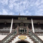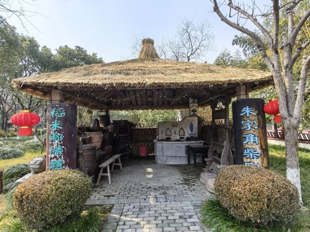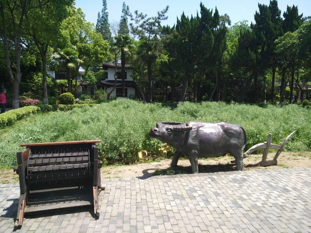 课植园位于朱家角古镇西北部,是当地大的园林建筑,园内小桥流水、一步一景,是古镇内值得一游的收费景点,而且环境清幽。课植园始建于1912年,历时15年建成,曾是当地巨贾马文卿的私宅。这座园林的设计结构和所用装饰建材,很多都采用中西合璧的形式,是课植园的一处特色。课植园的大门临着水巷,门口看起来平淡无奇,但里面却别有洞天,尤其是穿过几道厅堂后会看到庞大的花园。课植园内分为课园和植园两大部分,课园是主人一家曾经的生活学习区,植园是娱乐耕作区。“课植”二字寓意“课读之余不忘耕植”之意,表现了园主人耕读持家的平和心理。首先进入的是连续的厅堂建筑,包括轿厅、会客厅、迎贵厅等,厅堂里雕梁画栋,装饰十分考究。屋顶面采用双层瓦片行板结构,有冬暖夏凉之奇效,头厅后仪门处还饰有精细砖雕,处处彰显大富人家的豪华气派。穿过厅堂是一条曲径通往花园,望月楼、书城是园内为典型的中西合璧建筑,园中碑廊里镶嵌着明代四大才子唐、祝、文、周的诗词信札等手迹石刻。园内有池塘假山、亭台楼榭,还建有戏台、九曲桥、以及假山上的倒挂狮子亭等建筑。园内的植物十分葱郁,走在绿意盎然的小径中可感受恬静安宁。与很多江南园林不同的是,这座园林深处中还辟有稻田、菜地和果林,取名为“稻香村”。这是当年园主人马文卿为让儿孙们体会农夫耕作之辛劳、以及耕九馀三的持家理念,而他自己则经常下田劳作以作榜样。