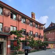 尽管因为疫情原因没法进入校园,但圣约翰大学古朴典雅、中西合璧的校园建筑,红墙尖顶,在蓝天的映衬下,矗立在苏州河边,格外有历史的沉淀感。