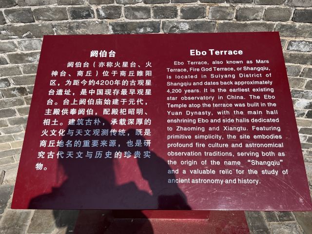 阏伯台下的土丘即阏伯始封之商丘。商丘地名即由此而来。阏伯台在一望无际的大平原上,更显得高大突兀。此台为古代商丘都城一带的高点,再加之古人认为阏伯台的精气上应商星,所以,自古以来,人们都把阏伯台看作是商丘的象征。景区现有燧人氏陵、阏伯台、开元寺、花戏楼、植物园、玉皇宫、酆都城、商祖殿、月老宫等主要景点。