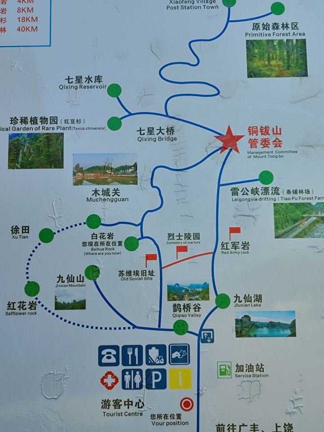 微信小程序铜钹山景区面积320平方公里,约占整个广丰四分之一。景区自然生态环境十分完好,境内有原始森林3万亩,景区森林覆盖率达98%以上,木材蓄积量为120万平方米,毛竹林面积10万亩,分布着大片的国家高级名贵树红豆杉。珍稀野生动植物种类繁多,地下蕴藏着多种矿产资源。境内有七星、军潭、条铺三个高峡湖,水光潋滟,风景绮丽;境内还有木城关、支面关、五通关、条铺关、太平关等雄关隘道景观。遍布奇峰怪石,秀山丽水,其中铜钹山尖、七星尖、双峰尖、悟道尖、上加尖、军潭石、老人石、关公石、八仙下棋等景点,让人流连忘返。同时,铜钹山景区有许多悠久的人文景观,境内有省级重点保护文物的九仙山城堡、北宋将领、资政殿大学士枢密院签书院事张叔夜故居。广丰的“三岩”之一白花岩,岩中有始建于元代的广福寺,寺内两旁有二十四诸仙石壁画,人物神态各一,造型生动活泼,斯处登高眺望,赣、浙、闽三省尽收眼底。景区内还有远近闻名的广福寺、悟道尖寺、马氏夫人庙;有1931年的广丰苏维埃政府旧址和十八勇士跳岩就义的红军岩,是的“红色故土”。该山峰(属武夷山东脉)为广丰县第一高峰,高点海拔1534.6米。山顶茅草丛生,一片平地,夏季较地面温差低于15℃,是度假避暑之胜地。这里林木葱郁,古树参天,峡谷深幽,自然生态环境十分完好。境内森林覆盖率高达90%,蓄积量120万平方米,有原始次生林3万多亩,毛竹林10万多亩,分布着100余科共2000余种野生高等植物,其中列为国家和省级重点保护的珍稀、濒危野生植物有南方红豆杉、香榧、香樟、柳松、银杏、厚朴、木莲等。茫茫竹林中,还散着几百株极其珍贵的天然南方红豆杉幼树。此外还有极为珍稀的银杏、木莲,大多为清代所植,至今已有一、二百年历史。据调查,鸟兽类野生动物有200余种,两栖爬行类100余种,昆虫种类更是繁多,其中列为国家重点和省重点保护的有黄腹角雉、毛冠鹿、短尾猴、云豹、穿山甲、熊、鹰嘴龟、尖吻蛇、眼镜蛇等30余种野生动物。受侵蚀构造地形的影响,该山峰形成了一个个陡峻的山峰,千姿百态,惟妙惟肖,构成了一个个形象逼真的自然景观。白花岩,又称白华岩,坐落在铜钹山景区东北高阳村境内的嵩山峻岭之中,为广丰县的“三岩”之一。岩穴面积约2500平方米,岩高60米,远望如吐蕊花瓣。岩中有广福寺,始建于唐末,寺内石壁上留有二十四诸元代仙图壁画,人物神态各异,造型生动活泼。线路推荐1、铜钹山景区一日游线路上午:广丰—九仙湖(乘游船)—高山红豆杉景区—岭底中餐下午:岭底—白花岩—九仙山—广丰2、铜钹山景区二日游线路第一天上午:广丰—九仙湖(登龟寿峰、乘游船、瞻仰红军岩等)—白花岩—岭底中餐(准备第二天中午的干粮)第一天下午:岭底—高山红豆杉景区—大丰源林场晚餐第二天:大丰源林场—原始森林—返回广丰3、铜钹山景区三日游线路第一天:广丰—九仙山(高阳农家饭)—白花岩—天星门—高庄—大丰源林场晚餐、住宿。第二天:大丰源林场—原始森林—返回岭底大丰源林场晚餐、住宿。第三天:大丰源林场—高山红豆杉景区—岭底中餐—九仙湖(登龟寿峰、乘游船、瞻仰红军岩等)—游程圆满结束。