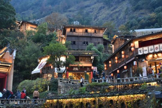 绝美风光:白鹤崖以险峻山势和独特地貌闻名,垂直高度超110米,白天可赏峡谷、溪流、古村构成的山水画卷,傍晚的日落和夜晚的灯光秀更是震撼12。